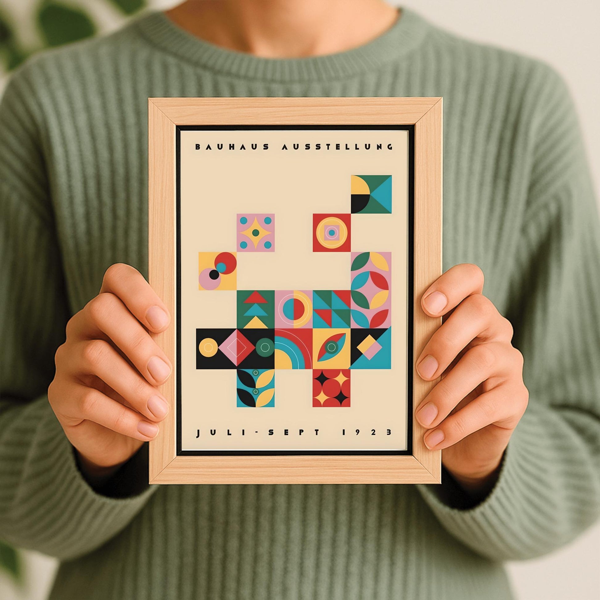 Celebrate the innovative spirit of the Bauhaus movement with this iconic Bauhaus Ausstellung 1923 poster. This physical art print is a reproduction of the poster for the first major Bauhaus exhibition in Weimar, Germany. The design is a masterpiece of modernism, featuring a grid of interconnected squares, each containing a unique composition of geometric shapes in bold, harmonious colors. The poster is a perfect representation of the school's focus on functionality, clean lines, and a fusion of art and technology.This striking print is ideal for:Modern Art Enthusiasts: A must-have for anyone who appreciates the history and style of the Bauhaus movement.Minimalist Decor: The clean lines and bold colors are perfect for adding a touch of contemporary design to a living room, office, or studio.Unique Gifts: A thoughtful present for a friend or family member who loves architecture, design, and art history.Printed on premium, durable paper, this physical print is ready to be framed and will become a stunning focal point in your home.Features:High-Quality Physical Print: A vivid, detailed poster ready to be framed and displayed.Iconic Bauhaus Design: Features a bold, geometric composition that embodies the spirit of the movement.Bold and Vibrant Colors: Utilizes the classic Bauhaus color palette and clean design.Durable Premium Paper: Ensures long-lasting color and detail.Versatile Decor: Perfect for a variety of rooms and decor styles, from industrial to modern.