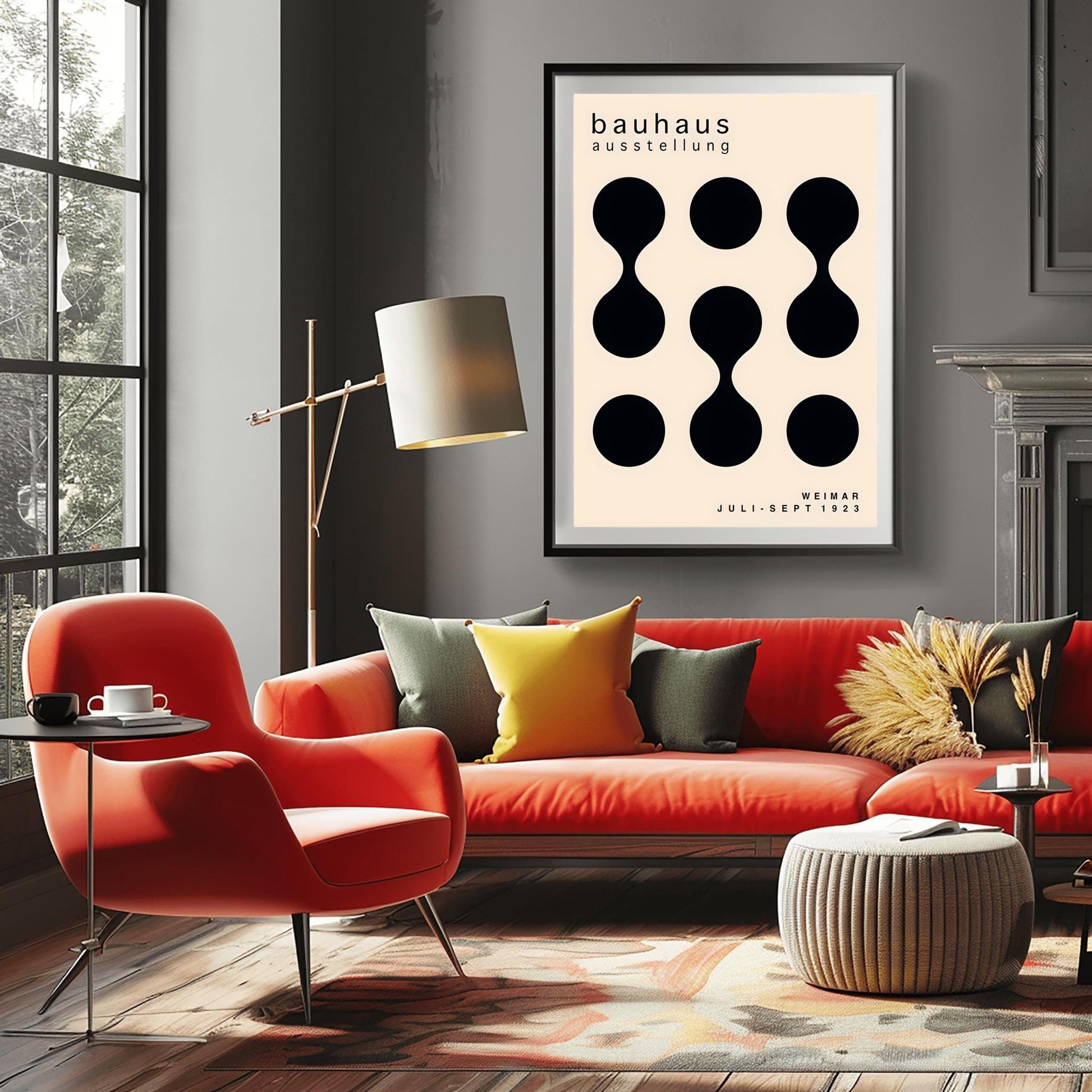 Infuse your space with captivating historical elegance with this stunning physical bauhaus art print—a faithful reproduction of a 1923 bauhaus exhibition classic. This minimalist bauhaus geometric art print perfectly encapsulates the foundational principles of the iconic set of bauhaus movement, seamlessly blending functionality with cutting-edge, sophisticated design.This unique bauhaus poster features bold black bauhaus print elements—circular and ‘figure-eight’ shapes—arranged confidently on a warm, off-white background. Clean minimalist typography, including “BAUHAUS AUSSTELLUNG” and “WEIMAR JULI - SEPT 1923,” grounds this piece in weimar art print history and makes it an essential addition to any mid century modern collection. It’s more than a minimalist poster—it’s a genuine exhibition art print that transports you back to the innovative world of early 20th-century Germany.Printed on high-quality, durable poster paper, each black white print offers crisp contrasts and enduring beauty, ensuring an authentic display of this influential artwork. The striking minimalist bauhaus style—along with elegant bauhaus arch print details—makes this an ideal abstract geometric art print for living rooms, home offices, studios, or gallery walls.Whether you’re assembling a bauhaus print set, searching for a meaningful piece from a set of bauhaus, or simply seeking a standout museum art poster, this print is an exceptional choice. It suits architects, designers, art enthusiasts, or anyone who appreciates the enduring legacy of modern and minimalist design.Features:High-Quality Physical Poster Print: Ready for framing and daily inspiration.Authentic 1923 Bauhaus Design: Highlights iconic geometric shapes and legacy typography.Striking Black & White Palette: Serves as a powerful, sophisticated centerpiece.Durable Premium Paper: Ensures longevity and vibrant display.Versatile Decor: Enhances mid century modern, minimalist, and industrial spaces.Unique Gift Idea: Especially fitting for lovers of art, design, and history.Celebrate the revolutionary spirit of Bauhaus with this striking bauhaus print set—perfect for bringing timeless design and minimalist charm into your home.