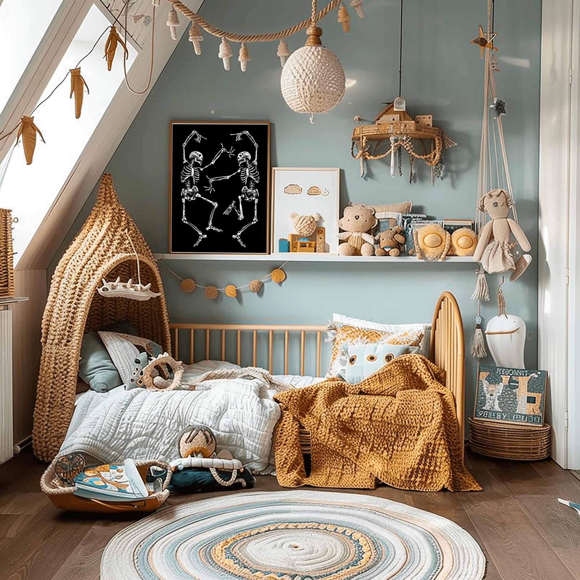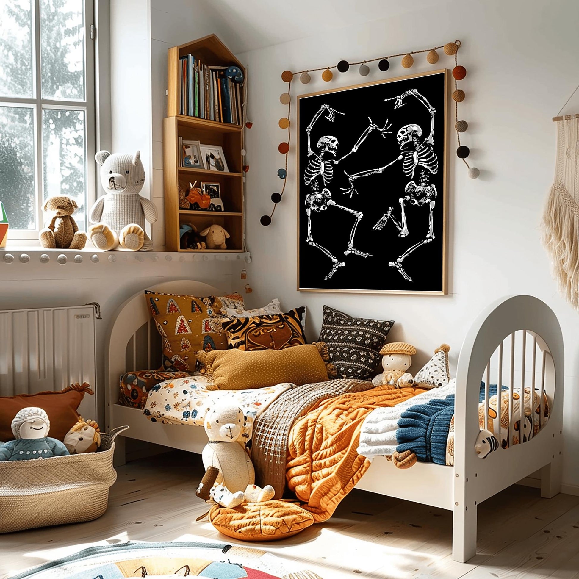 Whether you’re curating a unique halloween display, seeking gothic wall art with a folk art twist, or searching for an unforgettable halloween gift, this dancing skeletons poster offers an artful and creepy chic solution. It’s an ideal pick for friends and family who admire dark academia, macabre decor, or unusual skeleton art that stands out.