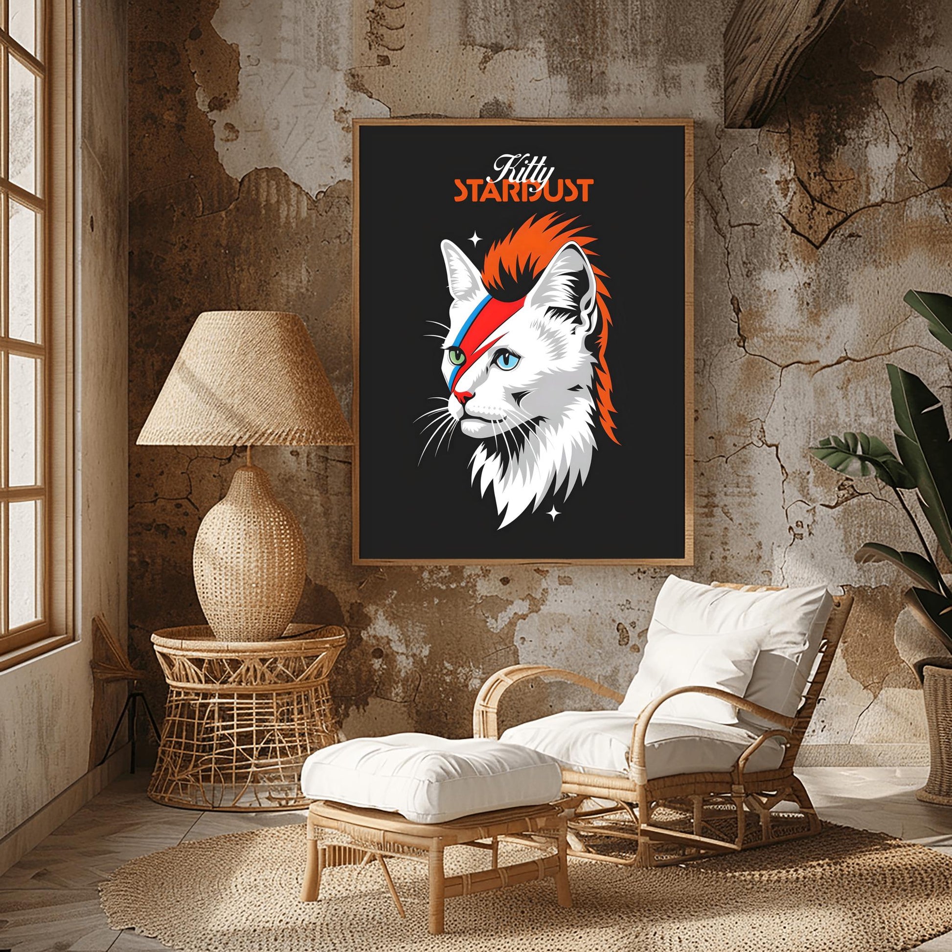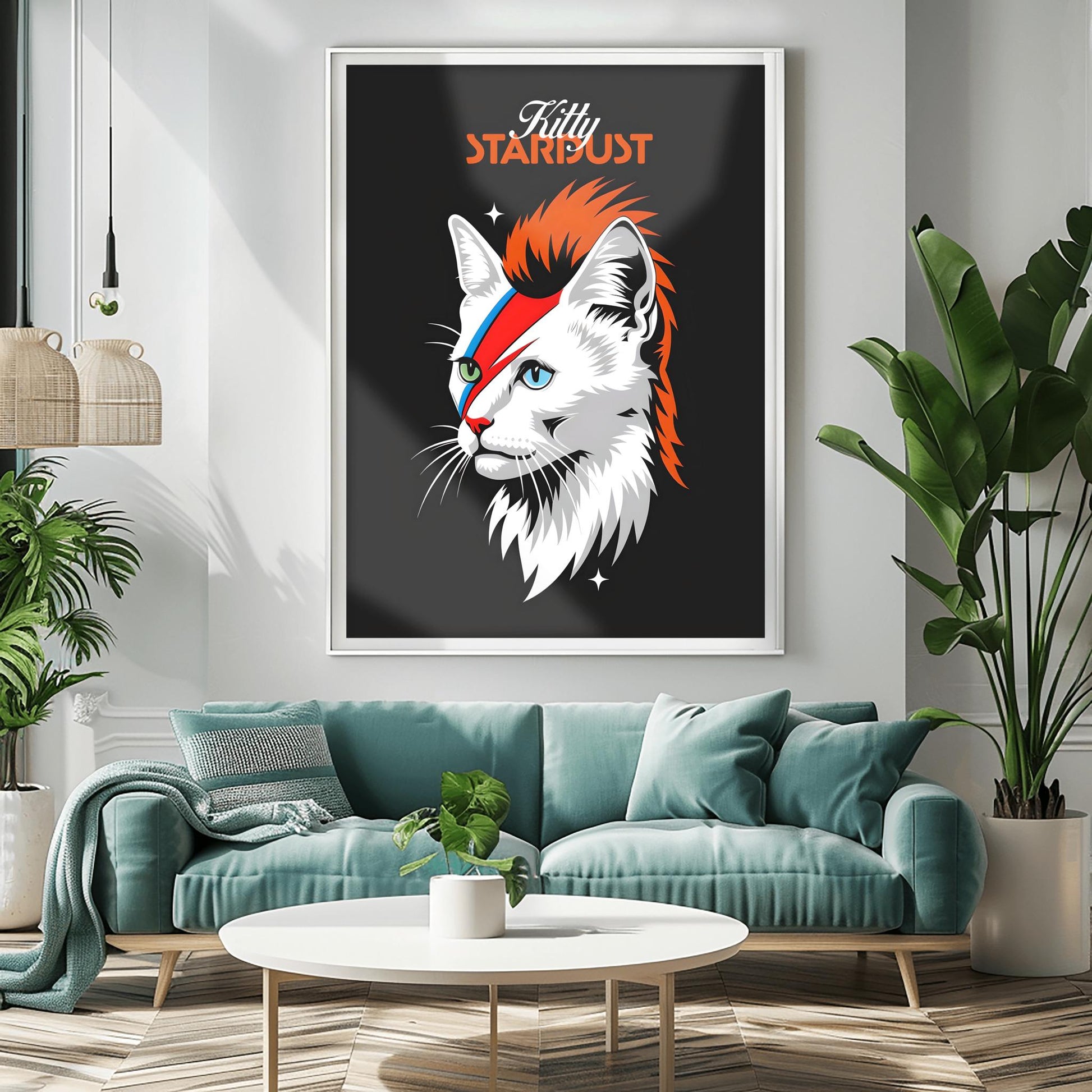 Whether you're a devoted David Bowie fan, a cat enthusiast, or simply appreciate bold and iconic art, this physical poster is a fantastic choice. Celebrate the legendary Ziggy Stardust in a fun and feline way!