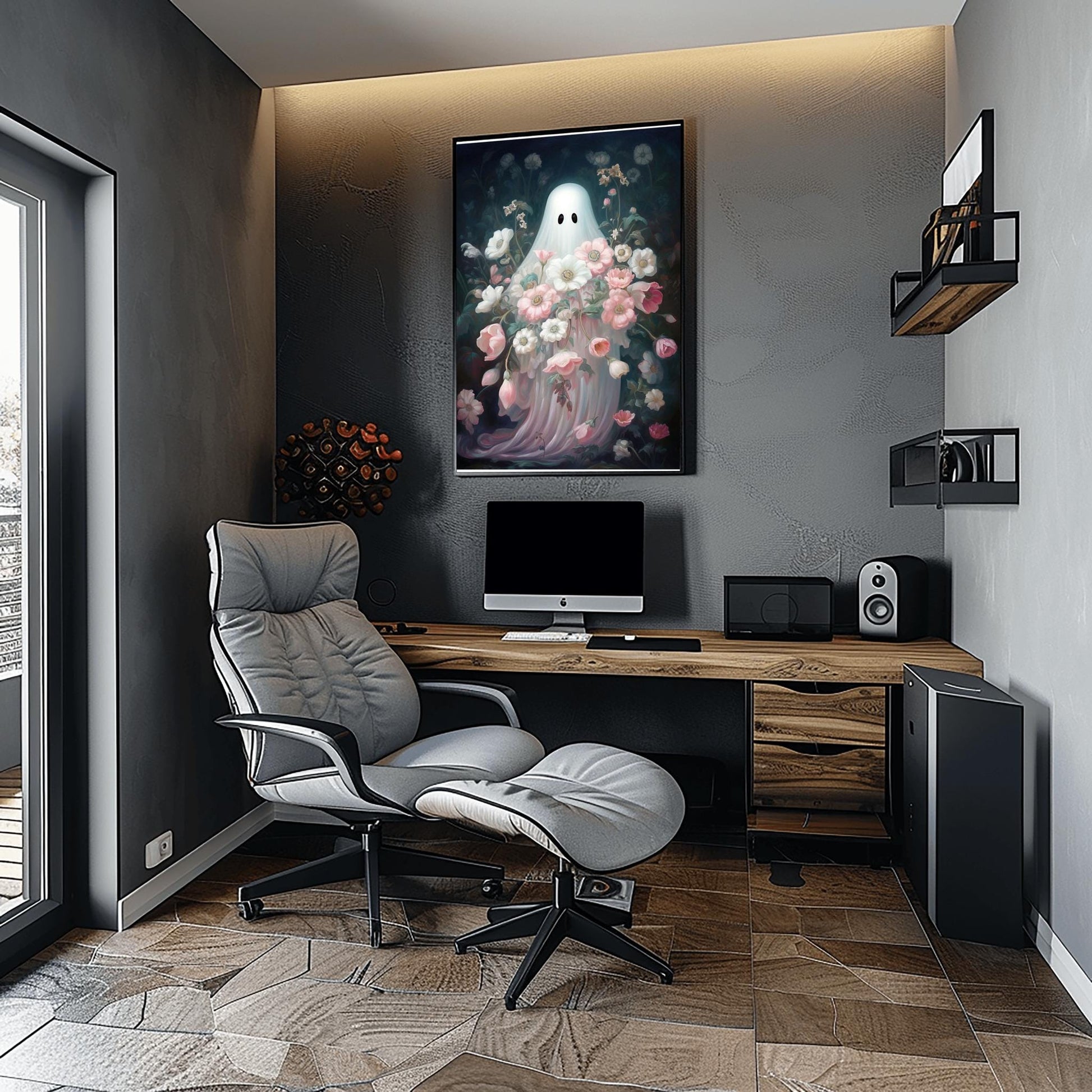 Bring a hint of the mystical garden and the whimsical world of an ethereal ghost into your home with this beautiful floral ghost art poster today.