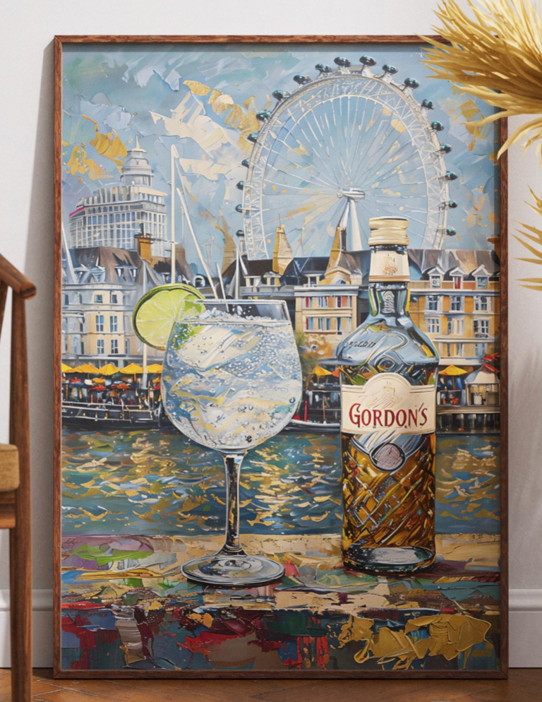 Gordons Gin and Tonic Impressionist Print, London Painting, London Beer Gift, Bar Art, London Skyline, Alcohol Art, Bar Beer, Beer Artist