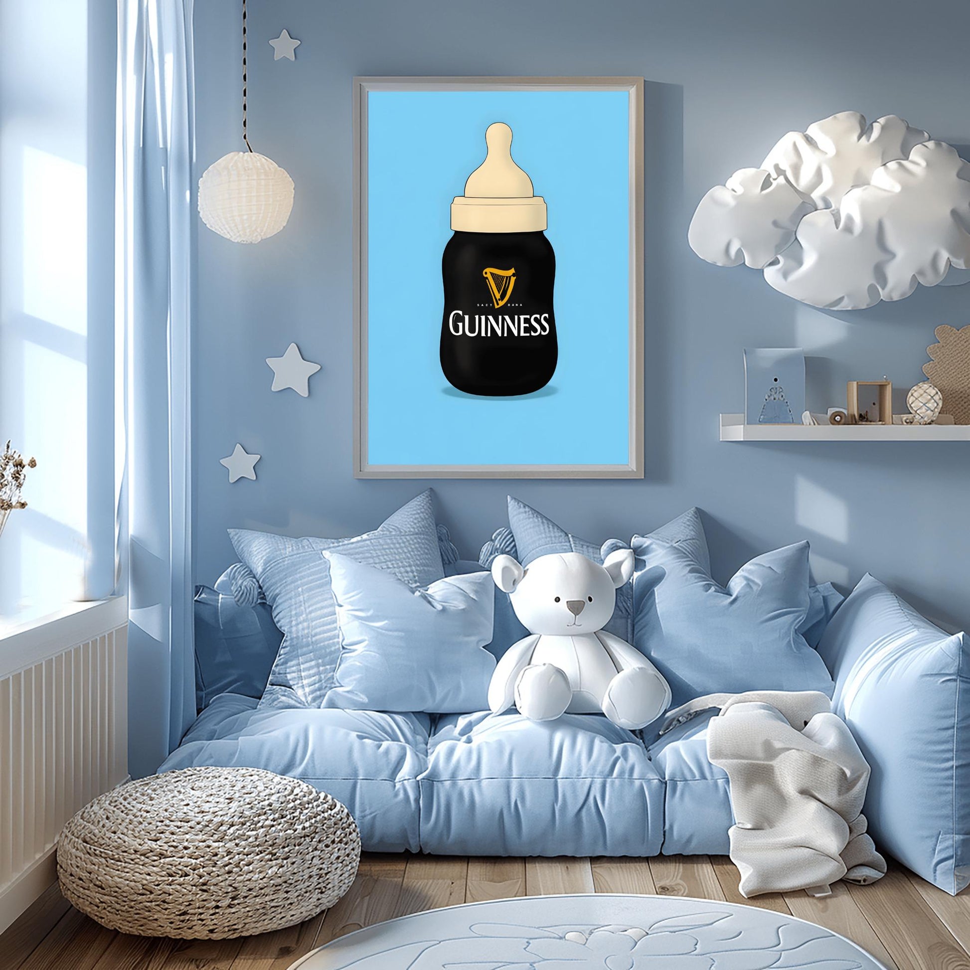 Printed on premium, museum-grade 260gsm gloss paper, this Guinness poster delivers a crisp finish as a physical print you can enjoy in any space.Pour some laughter into your life with this unique baby bottle art—a humorous poster that works as a funny beer gift or beer lover gift. Inspired by vintage bar art and retro wall decor, this playful piece doubles as memorable man cave art and classic Irish pub decor. It’s sure to stand out as an Ireland gift, or as a quirky way to celebrate St Patricks Day.Looking for something special for a nursery room art theme? This Guinness baby bottle art brings charm with an unexpected twist. Perfect for new parents with a sense of humor or anyone collecting retro or Irish wall art.Easy to order: