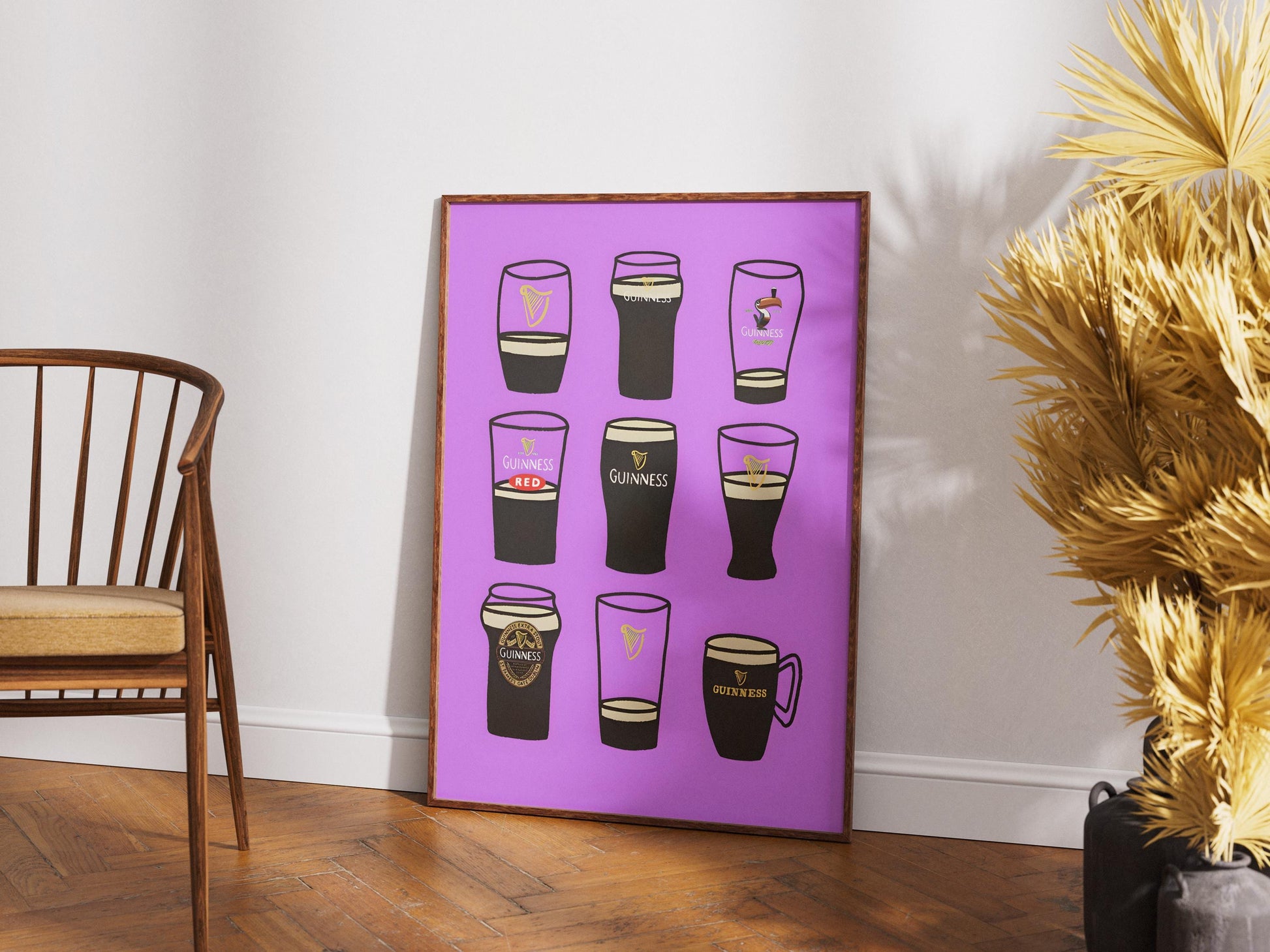 Printed on premium, museum-grade 260gsm gloss paper for a crisp finish.Bring a splash of Irish charm to your space with a guinness poster that celebrates the rich tradition of irish stout beer. This guinnes print captures the classic pint of guinness, making it the perfect piece of alcohol art for your kitchen home bar, dining area, or man cave.You’ll love these features: