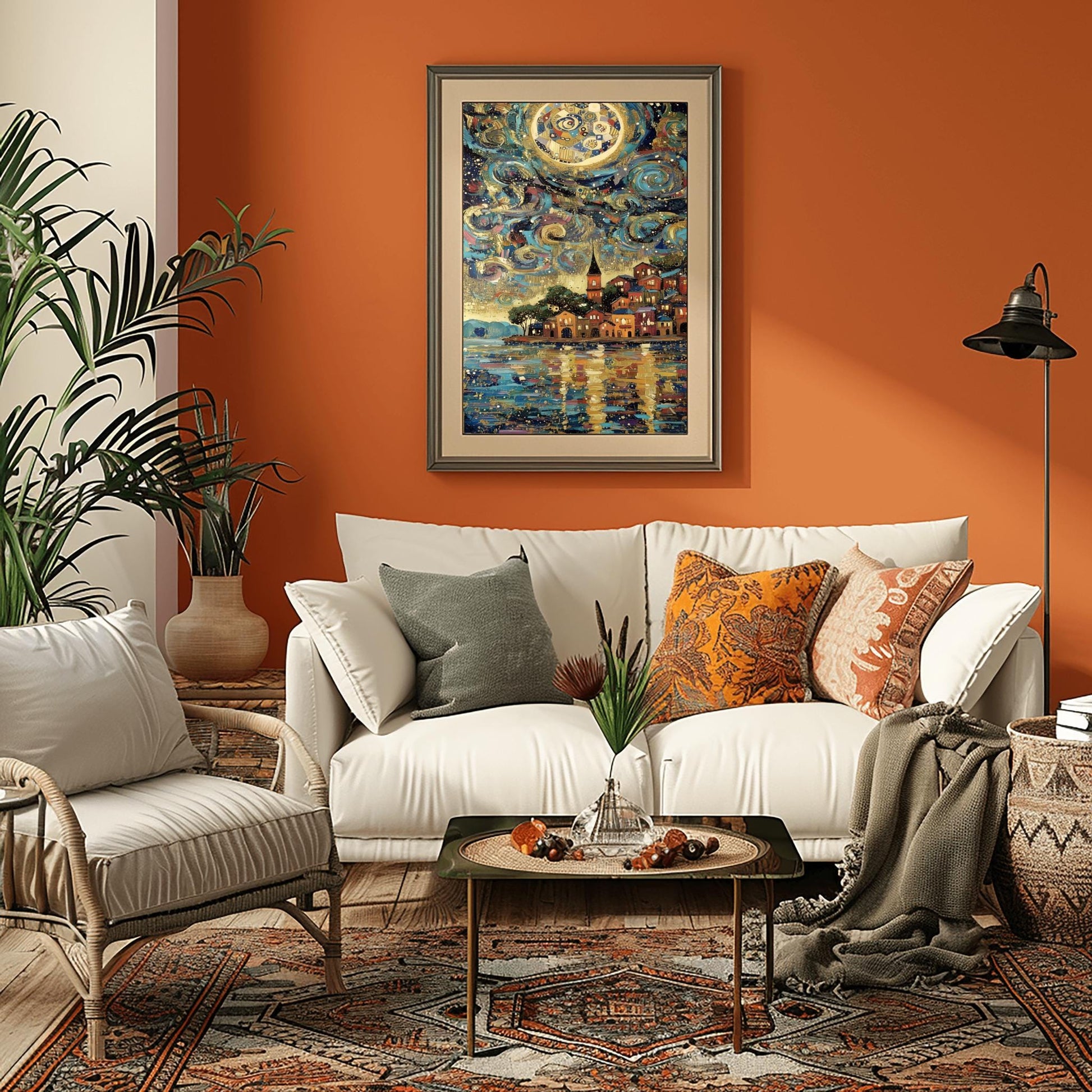 Bring a Touch of Klimt’s Magic to Your Home 🌙Transform your space with this enchanting Gustav Klimt print, featuring a serene village night moon scene inspired by Klimt’s signature style. This klimt painting captures the dreamlike atmosphere of a moon and stars print, blending stylized trees, glowing orbs, and flower market print details beneath a star-filled sky. Designed to echo the allure of a klimt museum poster and exhibition poster, it’s a nod to the kind of klimt art you’d find at a klimt exhibition.Whether you admire Gustav Klimt for his romantic symbolism, have a passion for klimt art, or simply enjoy the tranquility of a moon stars poster or whimsical flower painting, this piece brings a calming yet vibrant mood to any room.🖼️ Perfect For: