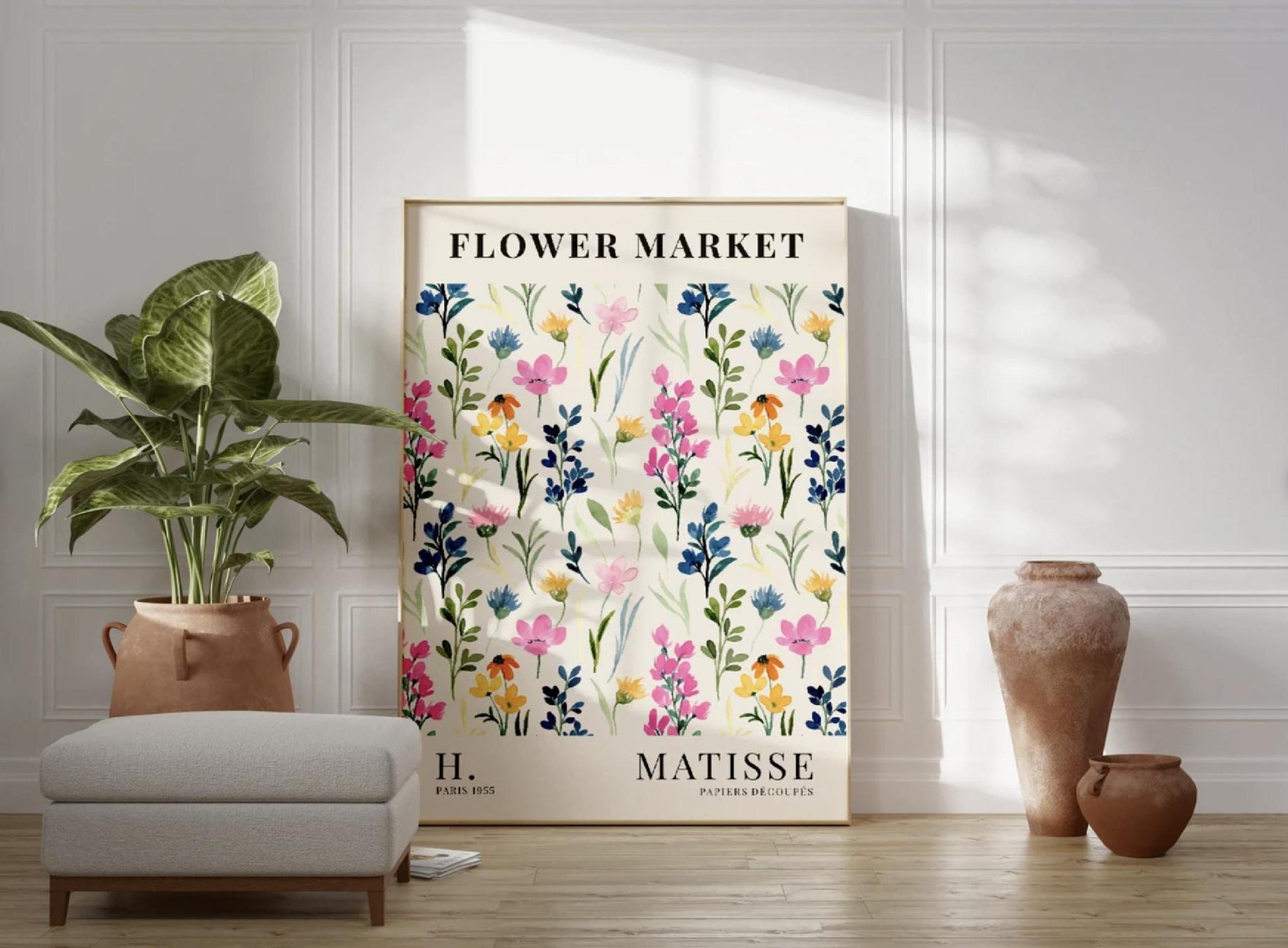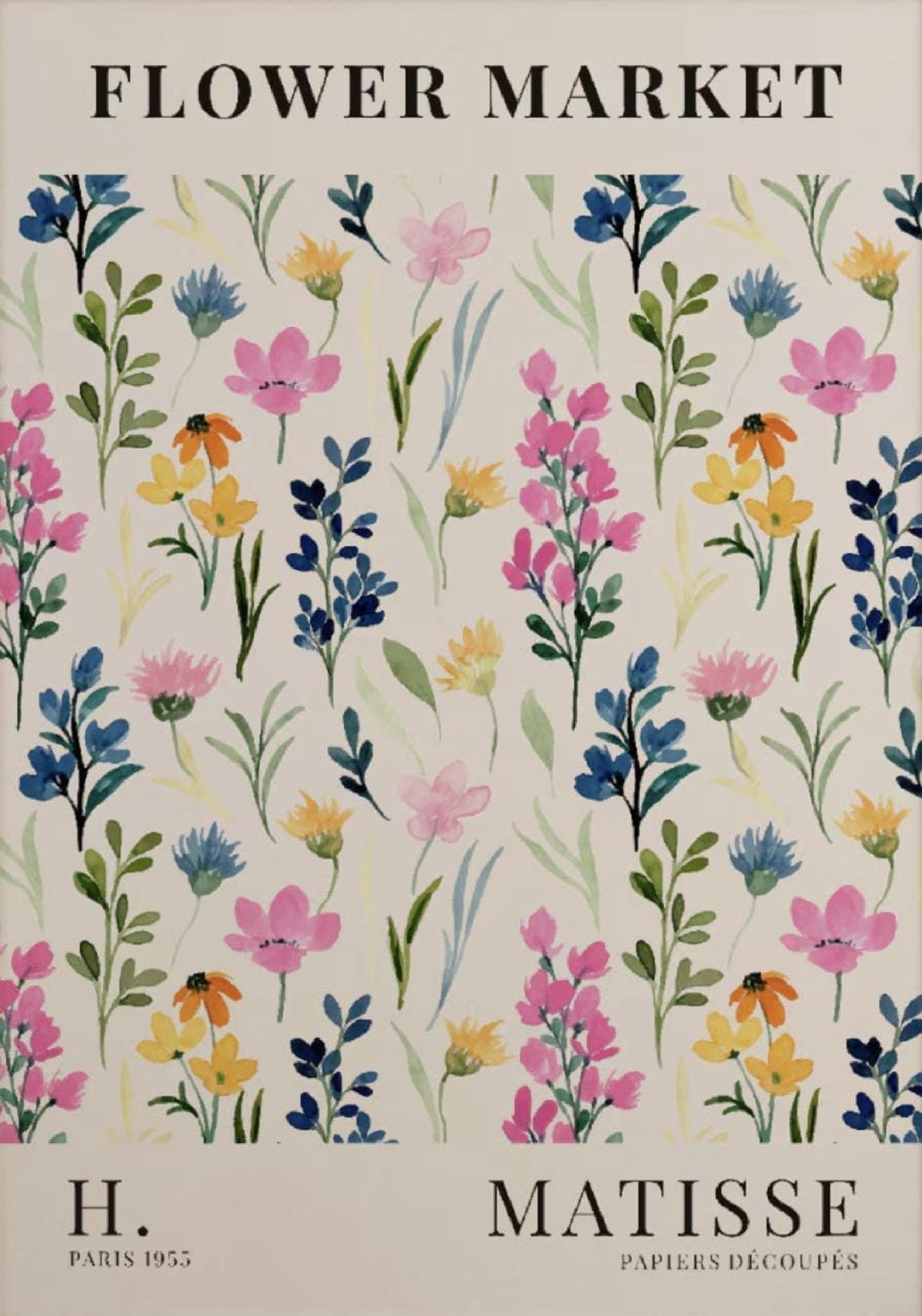 Bring vibrant color and modern style to your space with this Henri Matisse 12x16 inspired floral wall art. The design features bold, watercolour-inspired flowers in pink, orange, yellow and blue, creating a joyful statement for any room.