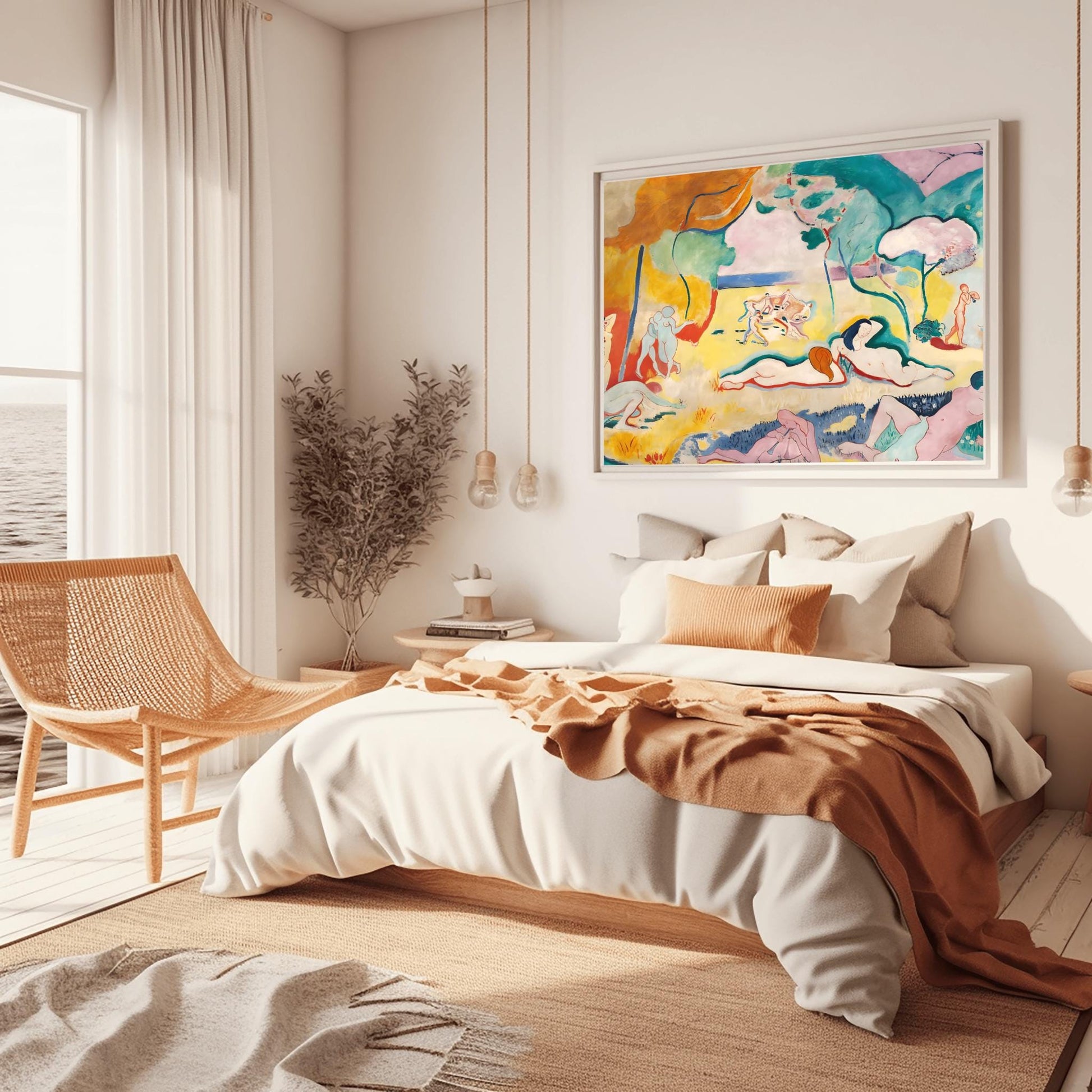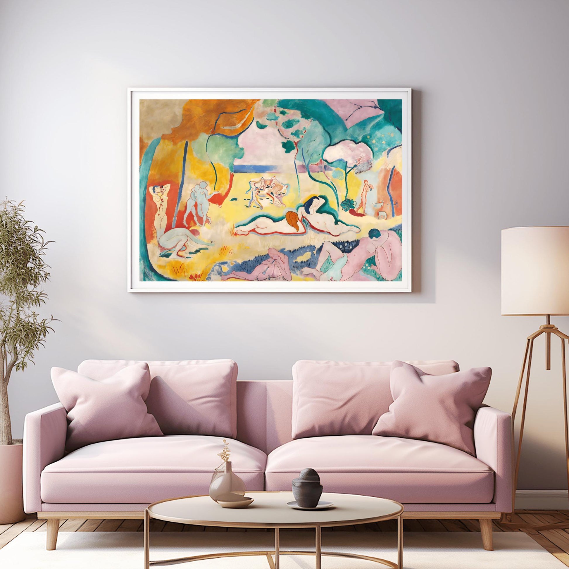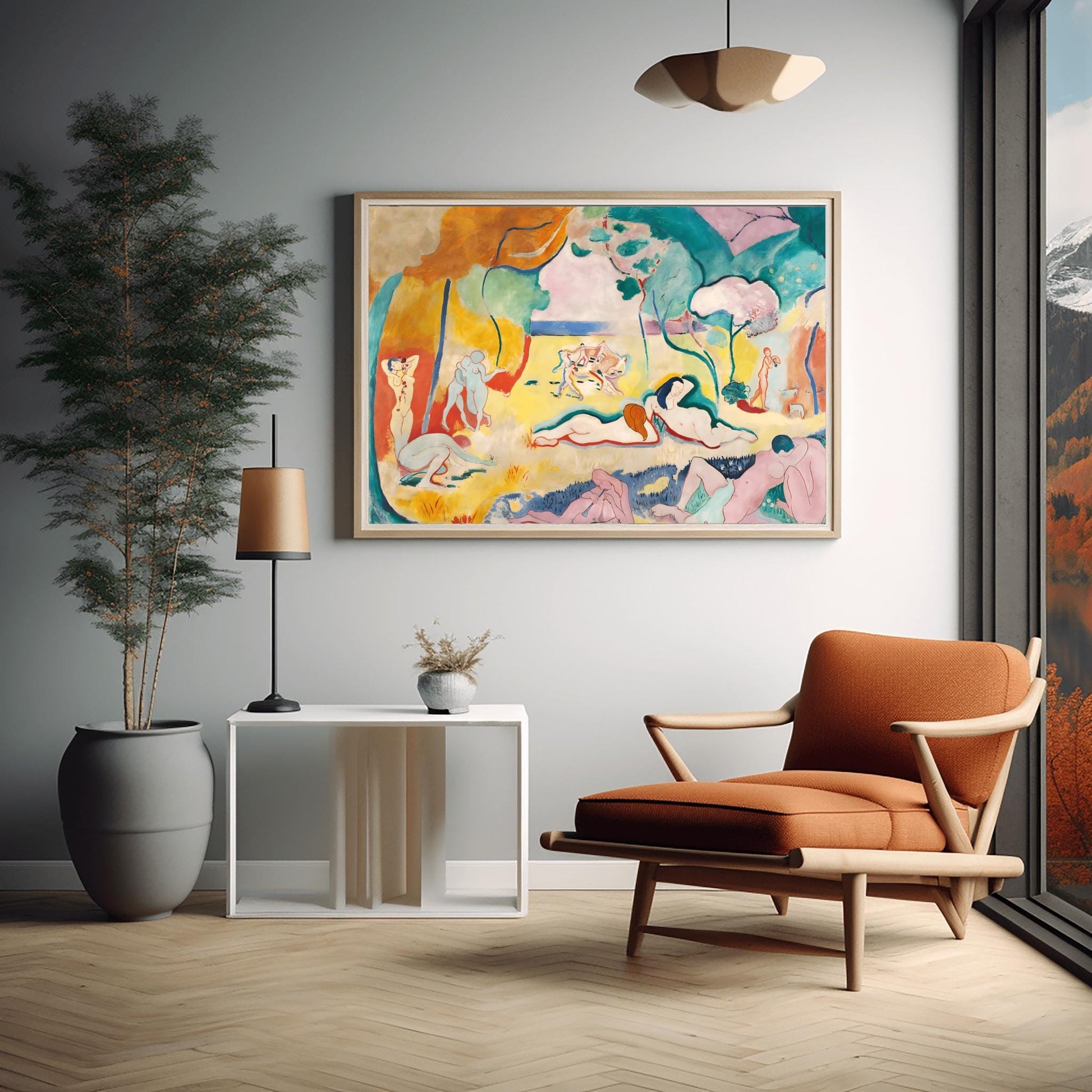 Enjoy a vibrant print of Henri Matisse’s “Joy of Life,” a classic example of Matisse painting and modern colorful art. This Matisse art print features abstract design elements inspired by fauvism painting, making it a striking abstract art print and an ideal piece of abstract wall decor for your home. Whether you want to enhance your space with a bold Matisse poster or seek a unique matisse print, this aesthetic decor brings the timeless beauty of Henri Matisse art and the playful spirit of matisse joy life into your surroundings.