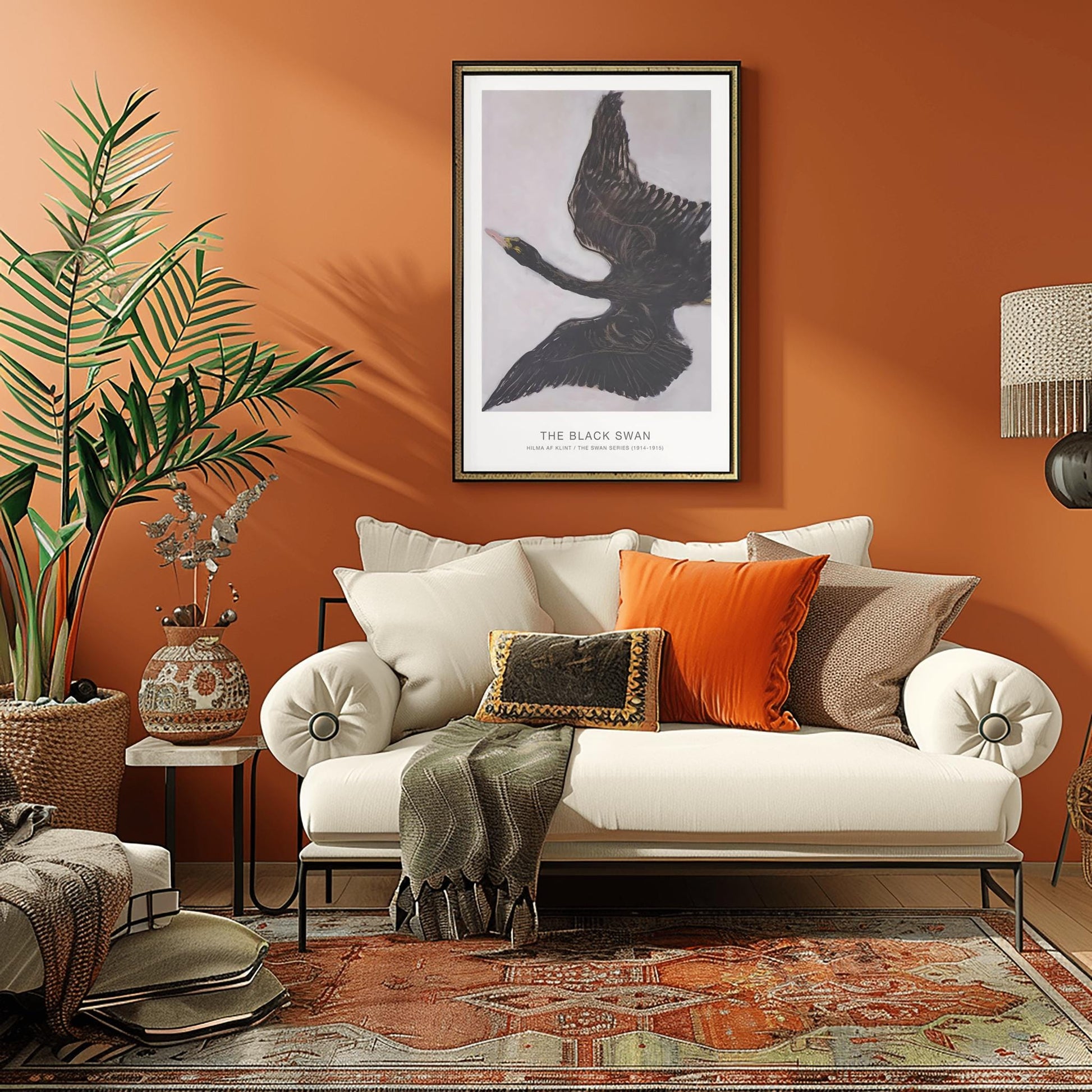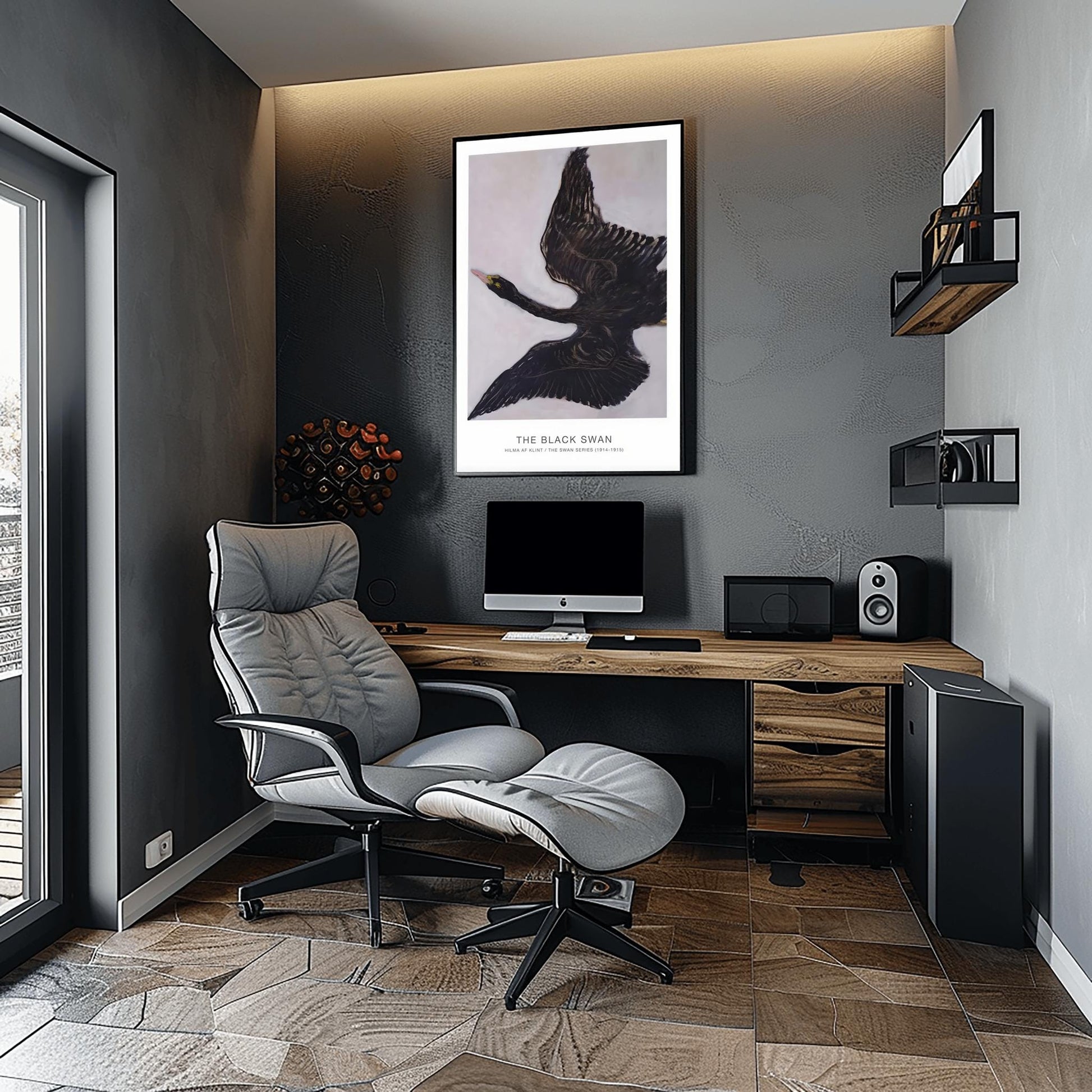 Capture the profound spirit of Hilma af Klint's vision with this carefully crafted poster print of "The Black Swan." As part of the influential "The Swan Series," this hilma af klint print highlights a masterful abstract composition rooted in spiritual painting, making it a striking addition to your collection of scandinavian art. The dynamic klint painting showcases a powerful black swan in flight, framed by minimalist shapes, embodying both the spiritual abstract and the distinctive style found in hilma af klint art.