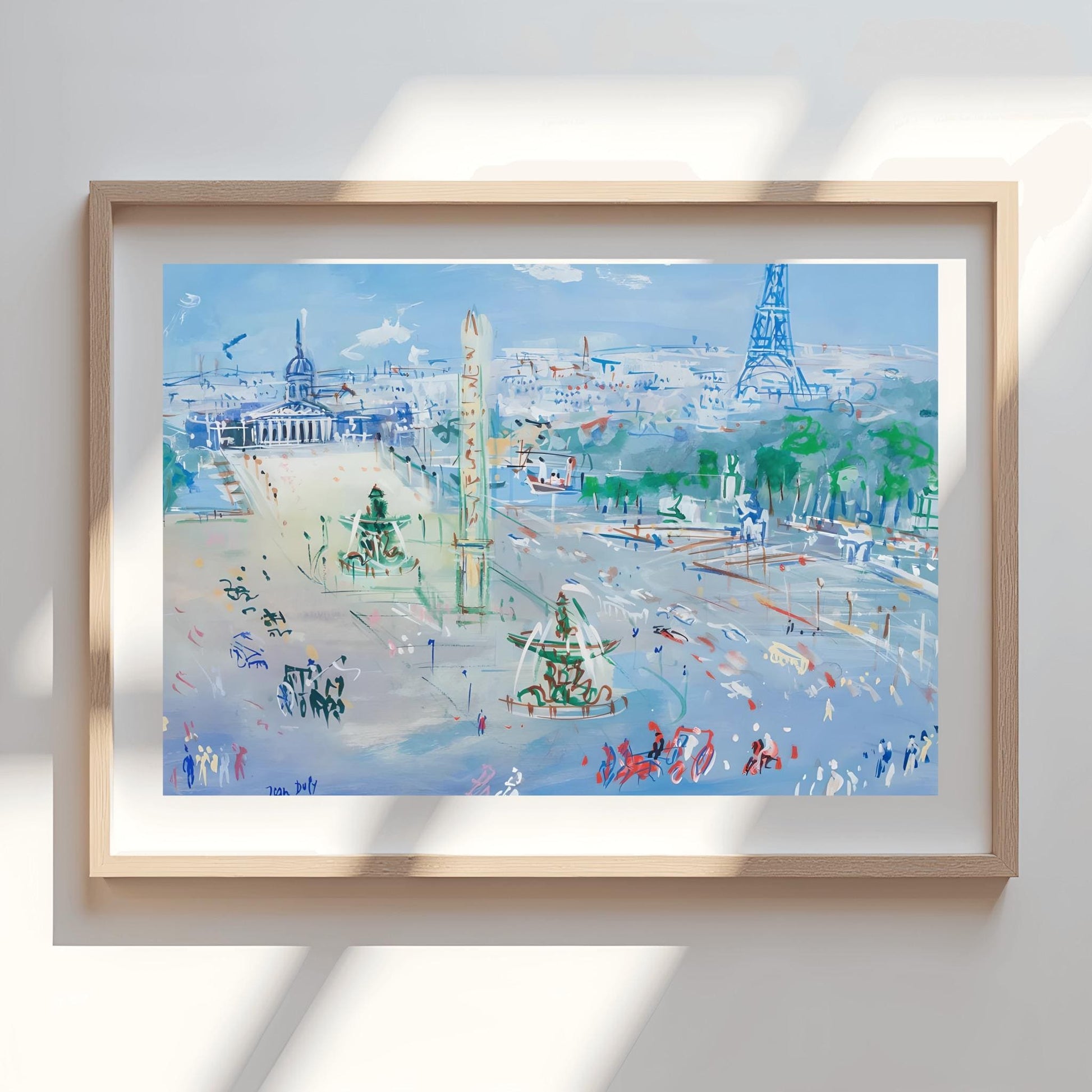Bring the romantic energy of Paris into your home with this stunning Jean Dufy Paris Print! This high-quality physical print captures the vibrant, impressionistic style of Jean Dufy's work, showcasing a bustling cityscape with visible brushstrokes and a soft color palette. The painting features key Parisian landmarks like the Eiffel Tower and the Place de la Concorde, making it a perfect piece for anyone who loves France or classic art.