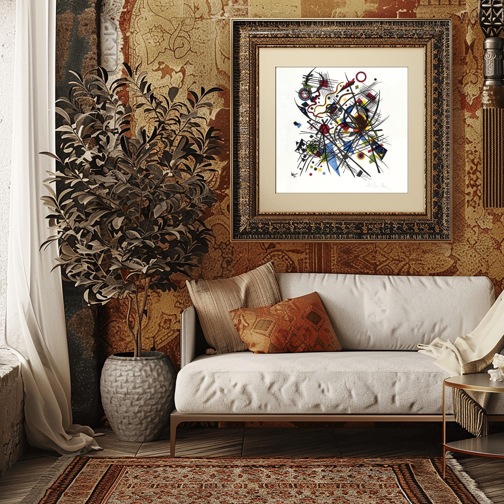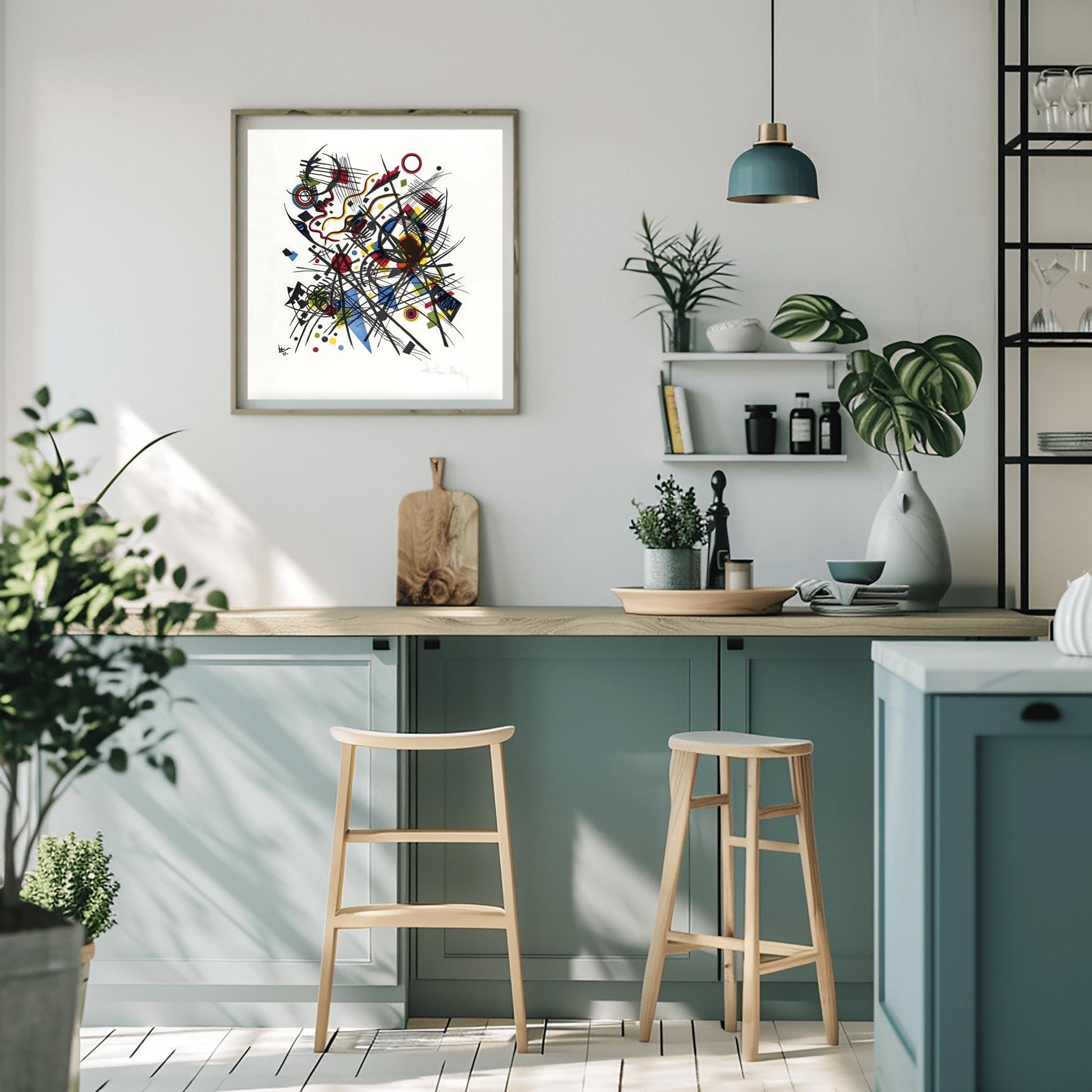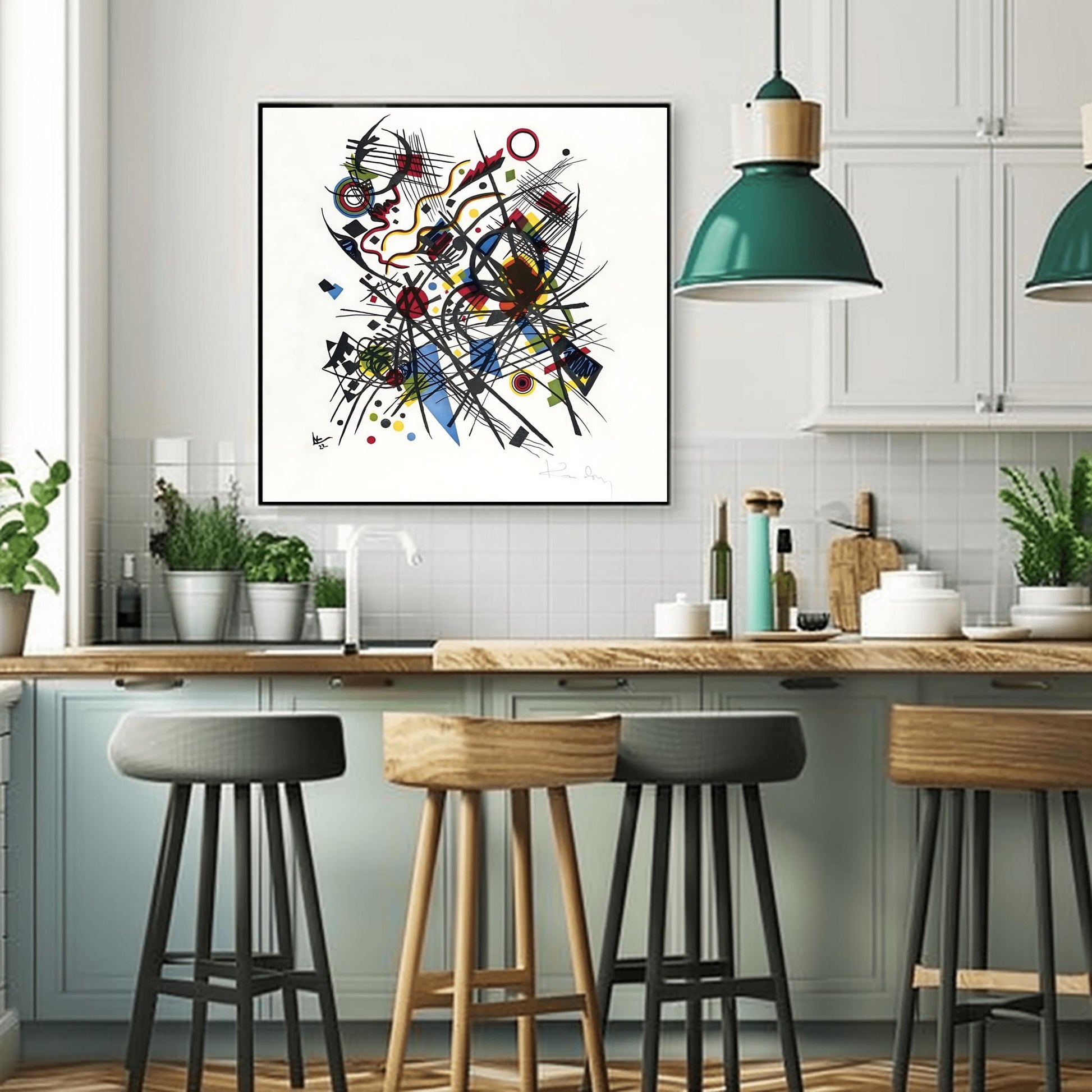Add expressive energy and sophisticated geometry to your space with this Kandinsky wall art featuring a striking combination of modern abstract art and geometric wall art. The design draws inspiration from Wassily Kandinsky and the Bauhaus movement, capturing the essence of a vivid bauhaus art print with intersecting lines, dynamic forms, and bold color, making it a perfect bold color poster for art lovers and those seeking colorful home decor. The style blends expressionist art with mid century poster flair, making it a versatile choice for any room.🎨 Product Highlights:- Physical giclée art print for stunning detail and color