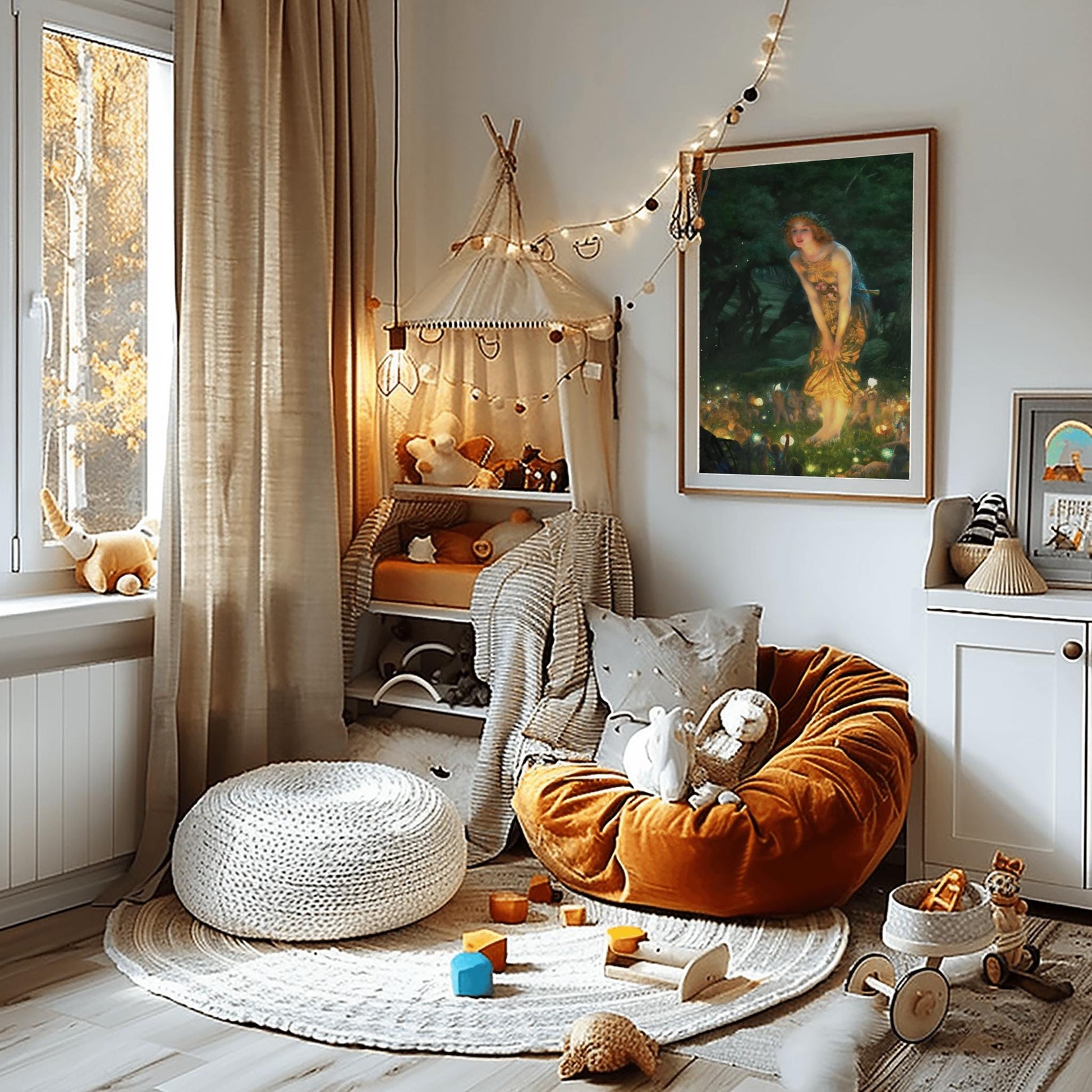 This print works perfectly as fairy wall art, bringing a sense of magic to any room and appealing to anyone who appreciates dark academia prints and pre raphaelite art. The Victorian fairy motif makes it ideal for those seeking whimsical, classic details in their home or searching for a fine art gift that stands out.