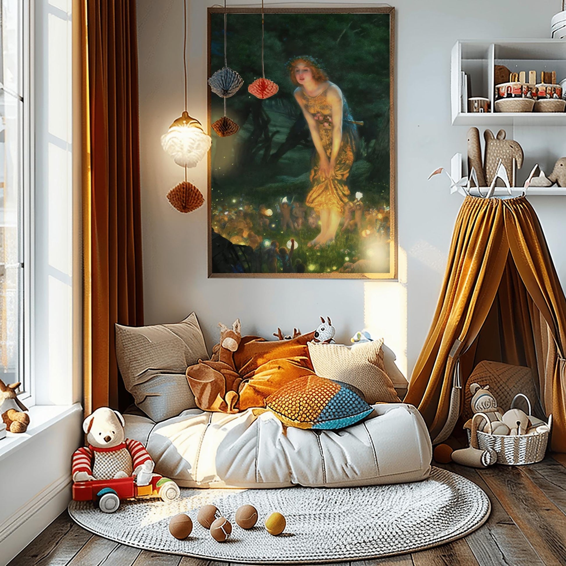 Midsummer Eve Print, Edward Robert Hughes Wall Art, Pre-Raphaelite Art, Aesthetic Fairy Decor, Unframed Fantasy Painting, Fine Art Gift