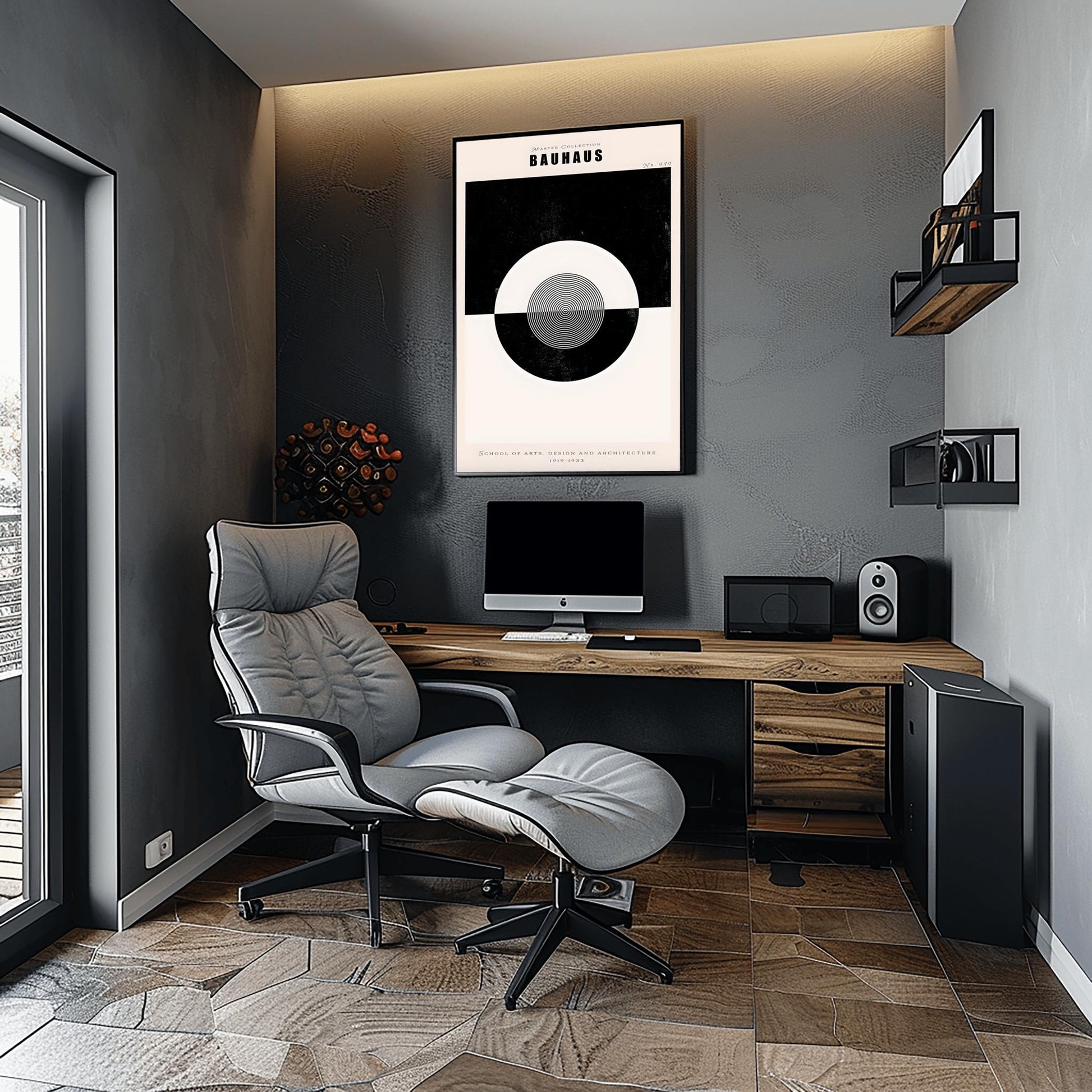 Transform your environment with the refined style and bold clarity of this minimalist Bauhaus poster, blending geometric art print aesthetics, optical illusion art, and true Bauhaus wall art influence.