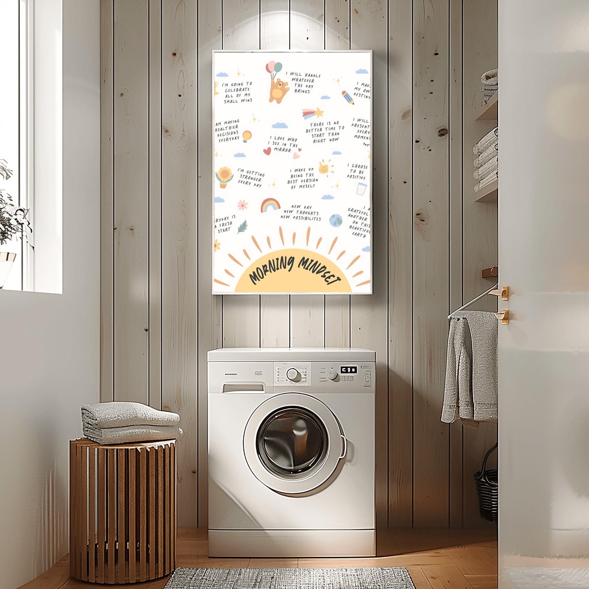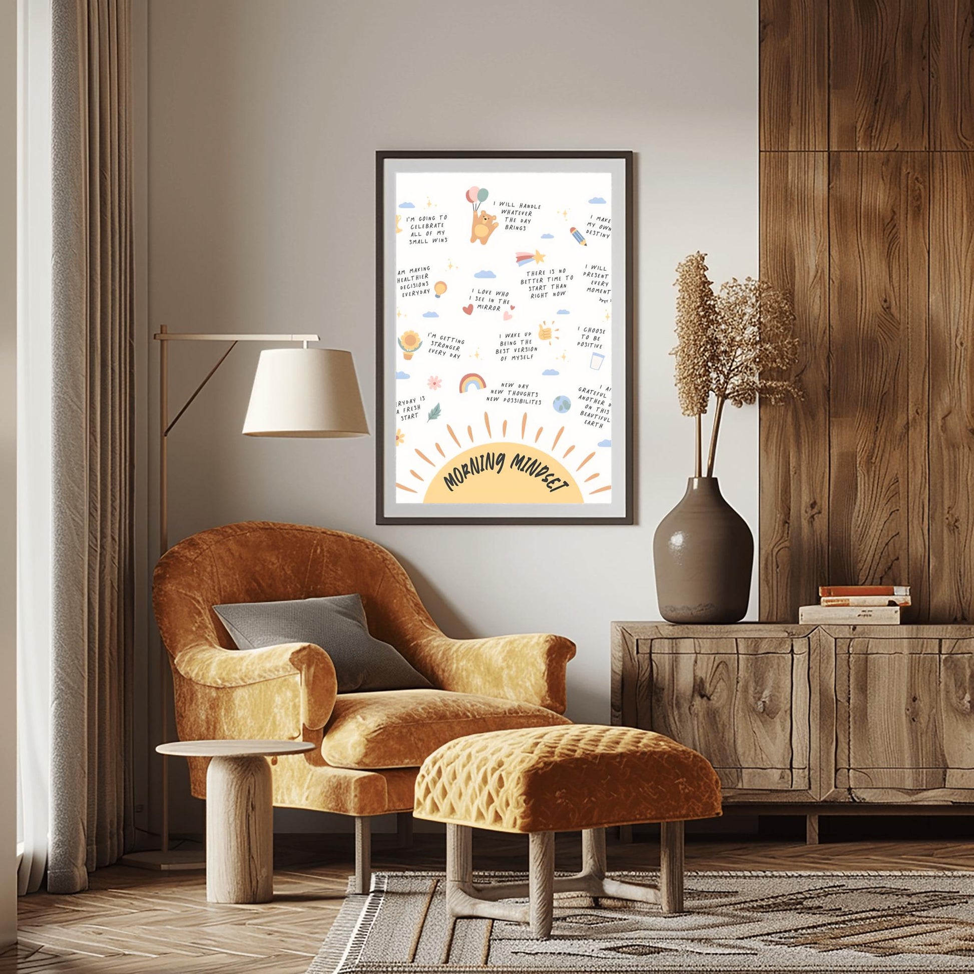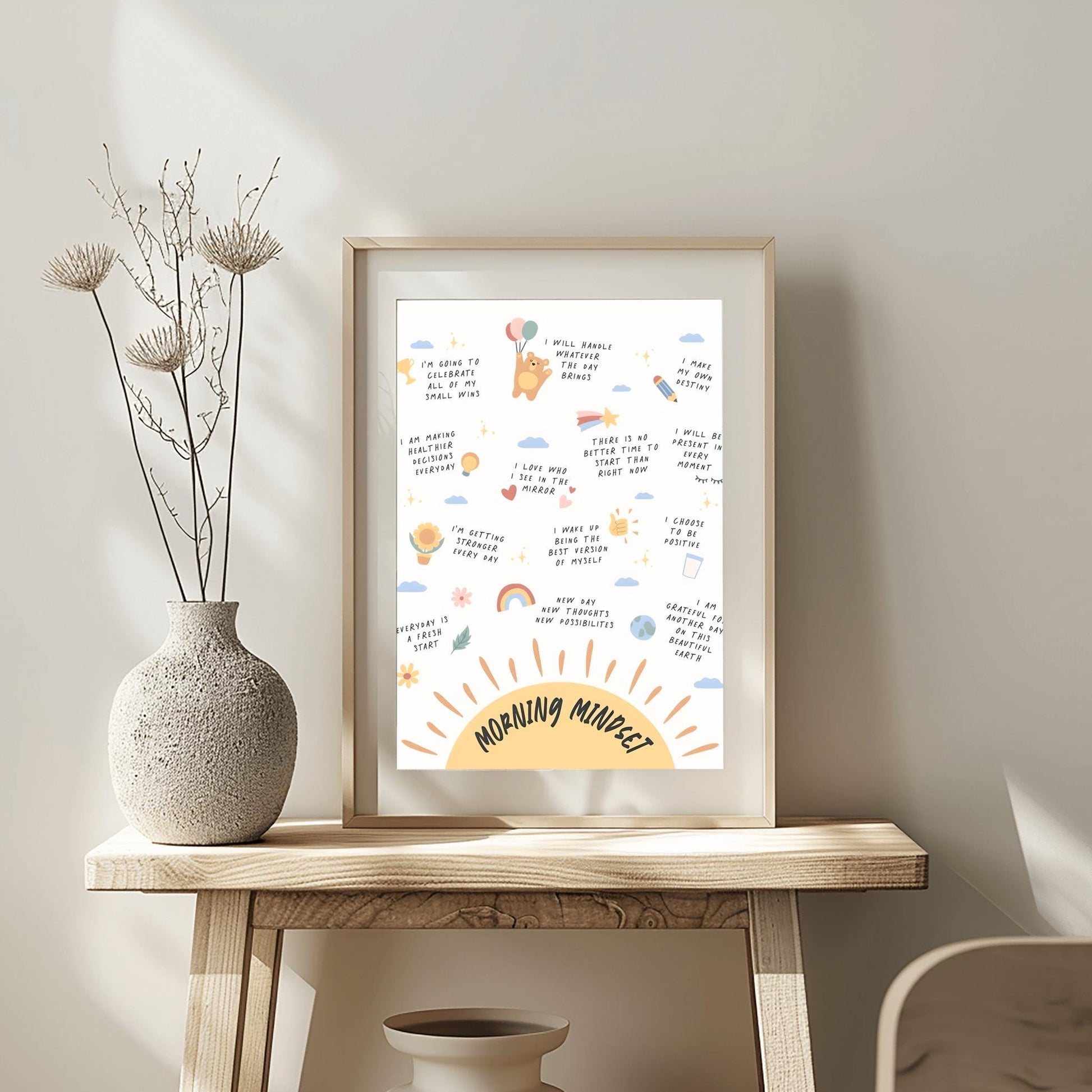 Morning Mindset Poster, Daily Affirmations Print, Self-Care Wall Art, Inspirational Quote Decor, Whimsical Kids Room Art