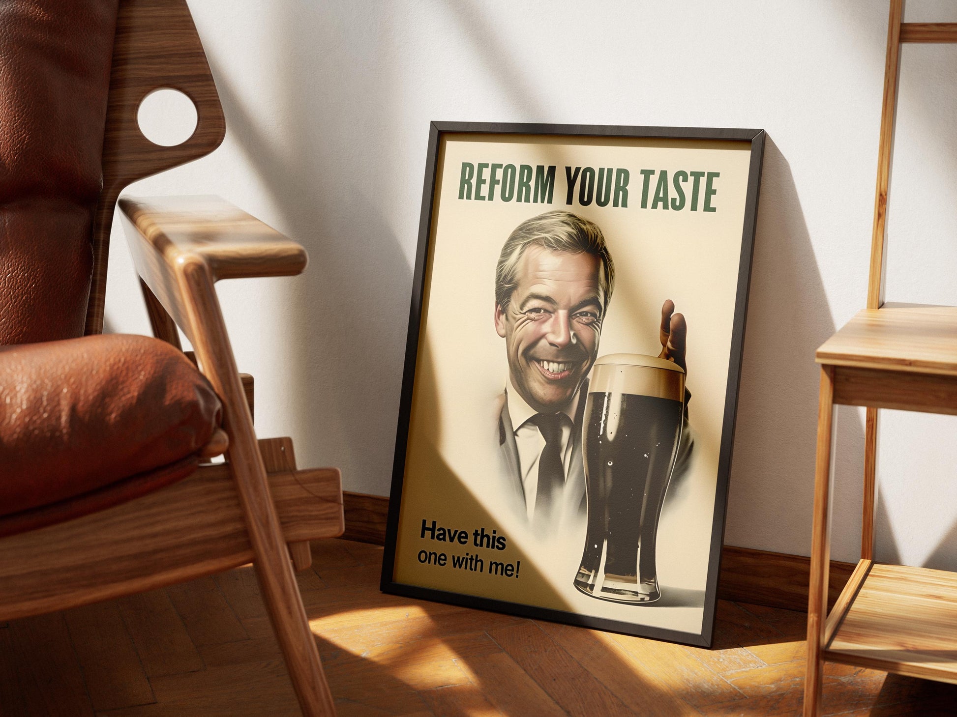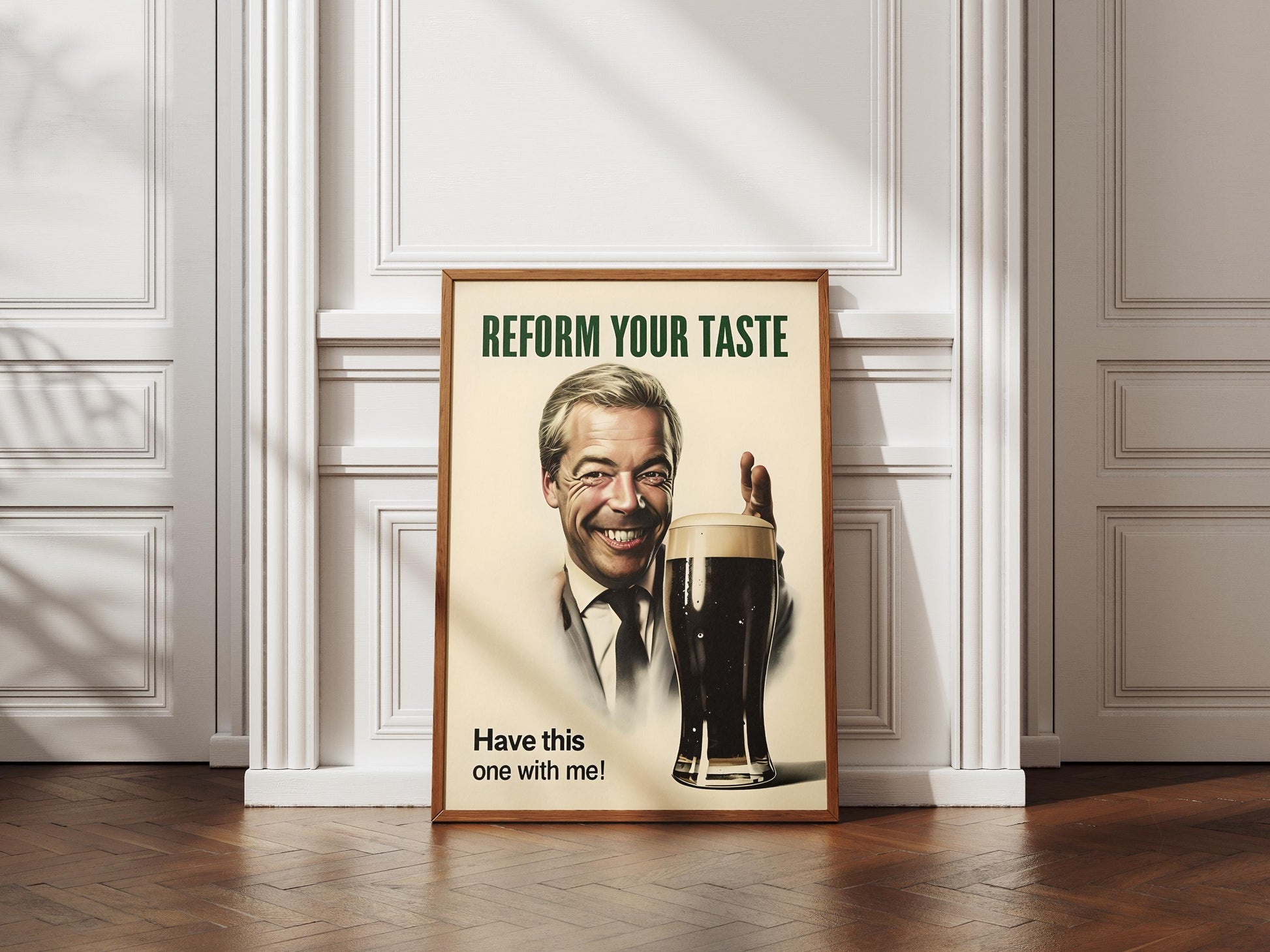 Nigel Farage Guinness Poster Print - Political Satire Art UK Prime Minister Wall Decor - Pub & Beer Lover Humour Quirky Gift