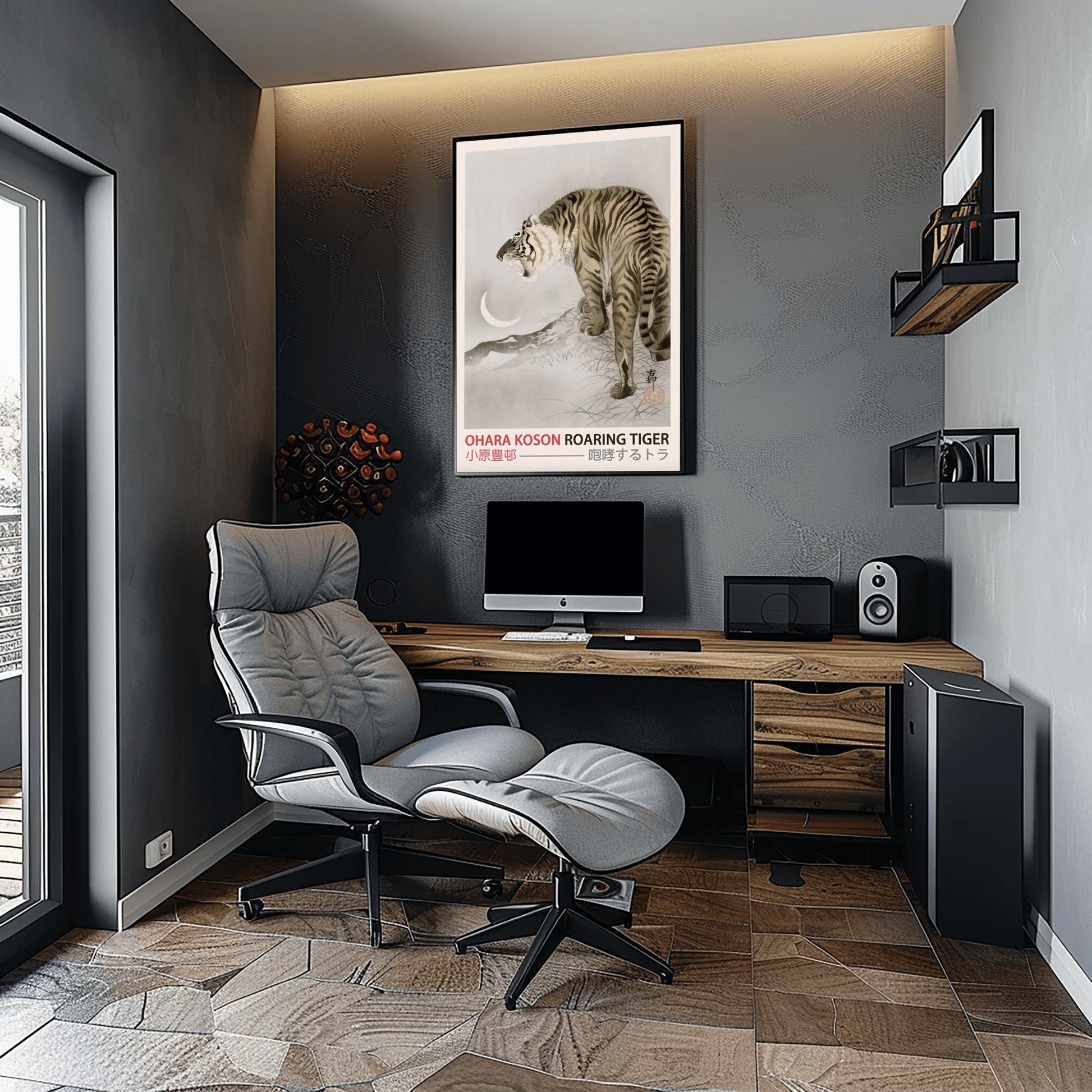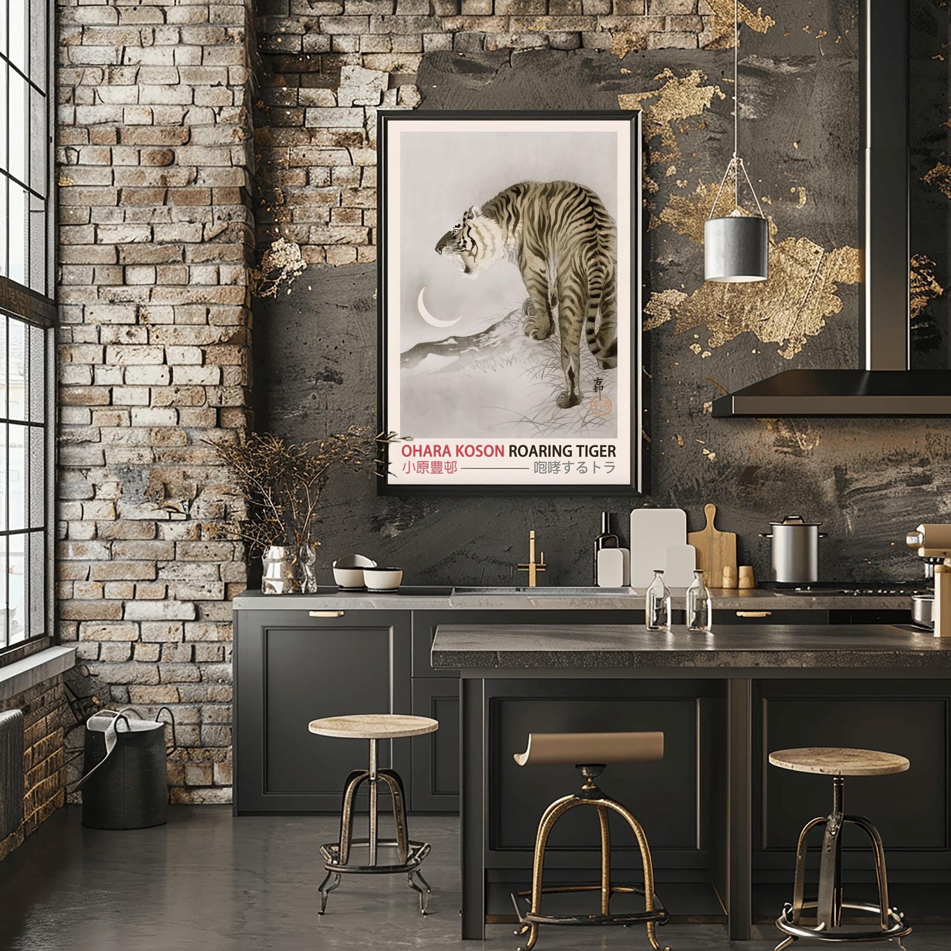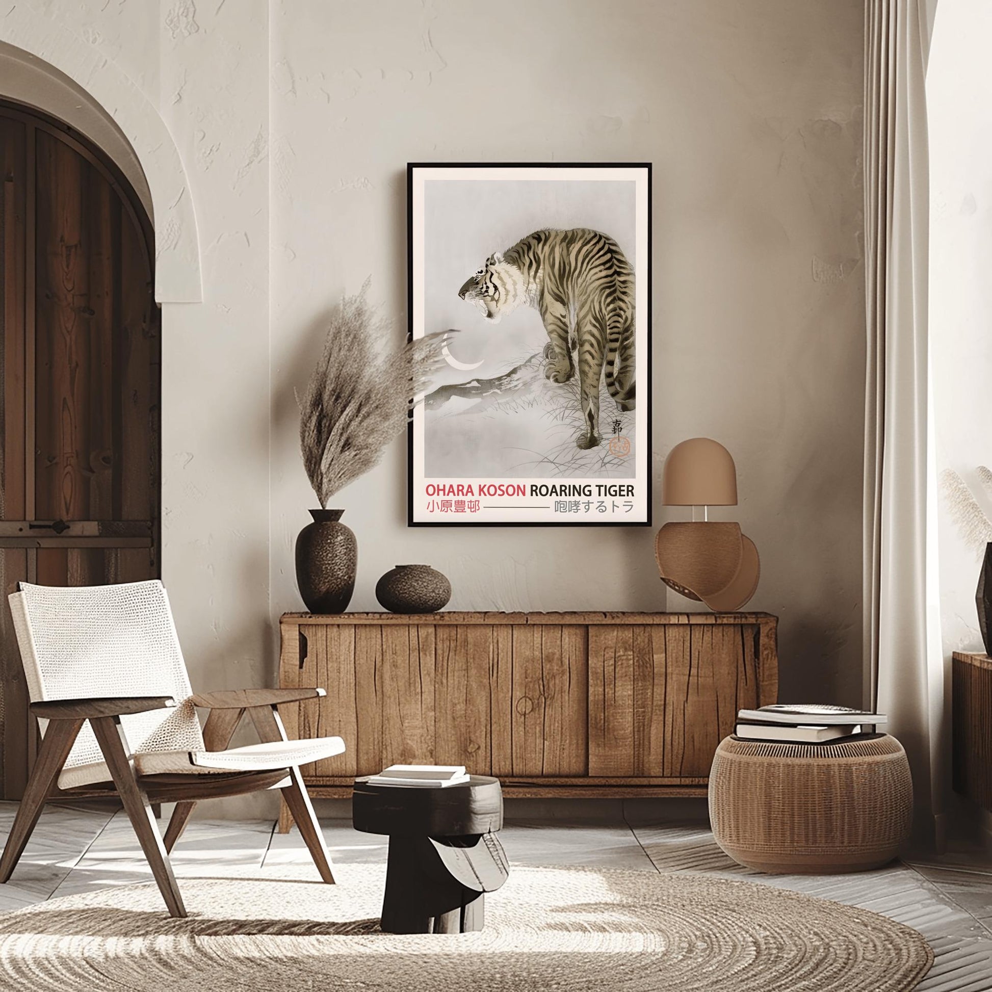 Bring a bold statement to your space with this vintage japanese tiger print, inspired by the iconic work of Ohara Koson. Featuring a roaring tiger, this design blends the beauty of traditional japanese art print with the captivating energy of animal art print. Whether you display it as a standout exhibition poster or a classic poster art print, you’ll add character and a sense of history to your room.