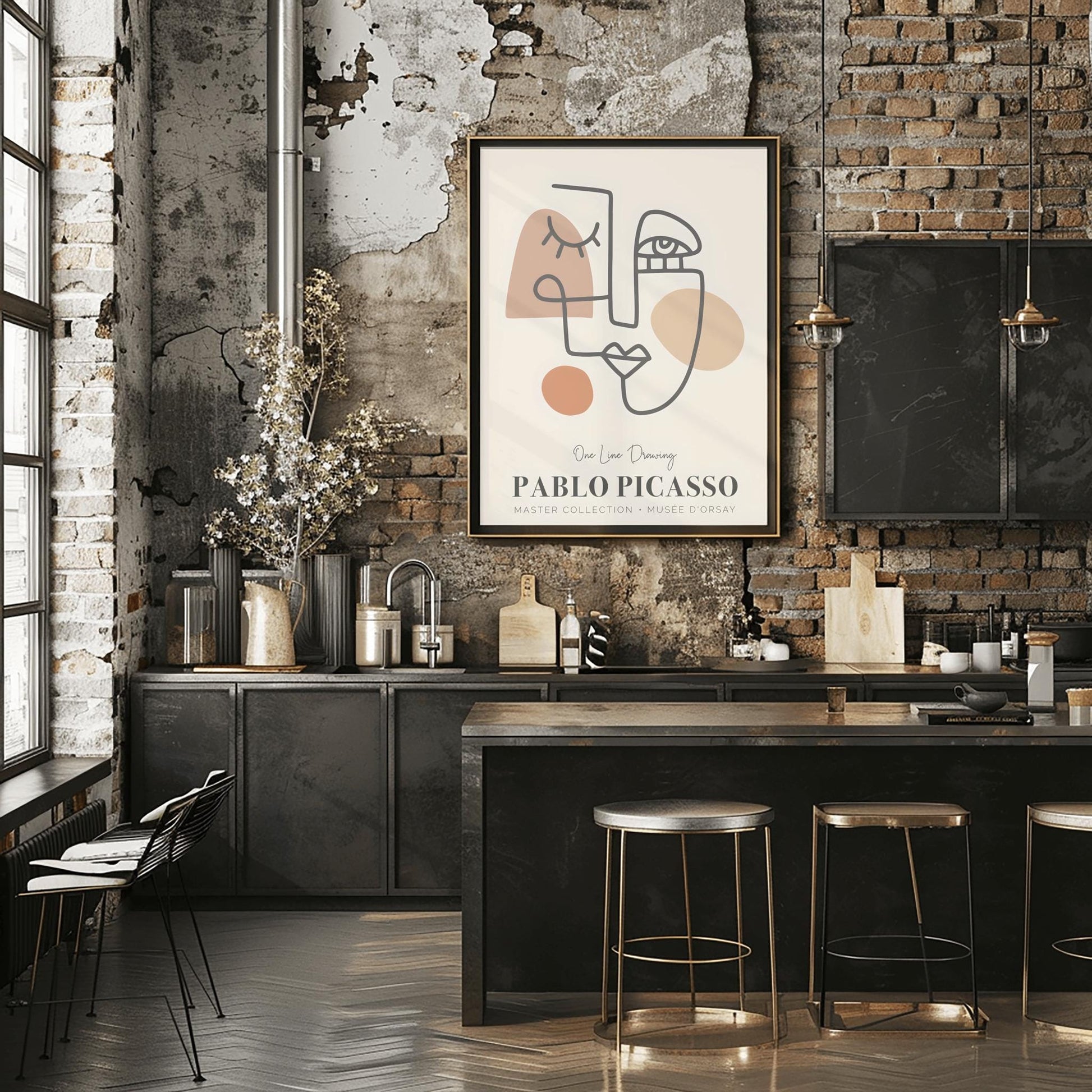 Printed on museum-grade, 260gsm gloss poster paper.Add artistic flair to your home decor with this eye-catching art poster, featuring a striking picasso drawing in the style of an Abstract One-Line Drawing of a Human Face, inspired by the genius of Pablo Picasso. This pablo picasso print captures the unique energy of cubist abstraction, paired with a clean, minimalist edge. Its contemporary look makes it a thoughtful wall print for any space.Showcasing true picasso inspired line art, this exhibition poster highlights fluid, continuous lines shaping a face—true to picasso art and abstract style. Earthy, modern shapes in brown and orange gently anchor the image against a subtle backdrop, giving the line art a calming yet bold vibe. With “One Line Drawing” and “PABLO PICASSO” noted, this piece proudly references the MUSÉE D'ORSAY and stands out as a statement art poster, perfect for any wall art decor collection or admirer of art history.Crafted on high-quality, durable poster paper, every detail of this minimalist wall print stands out, delivering sharp lines and refined color. The design draws on Cubism style, bringing a touch of gallery inspiration into your home with a fresh, modern twist.This pablo picasso poster is a great choice if you want to infuse your room with conversation-starting creativity or seek an ideal gift for an art lover, collector, or interior designer. Its thoughtful design makes it a unique housewarming gift or a distinctive addition to any modern art collection.Features:- High-Quality Physical Poster Print: Arrives ready to frame and mount.