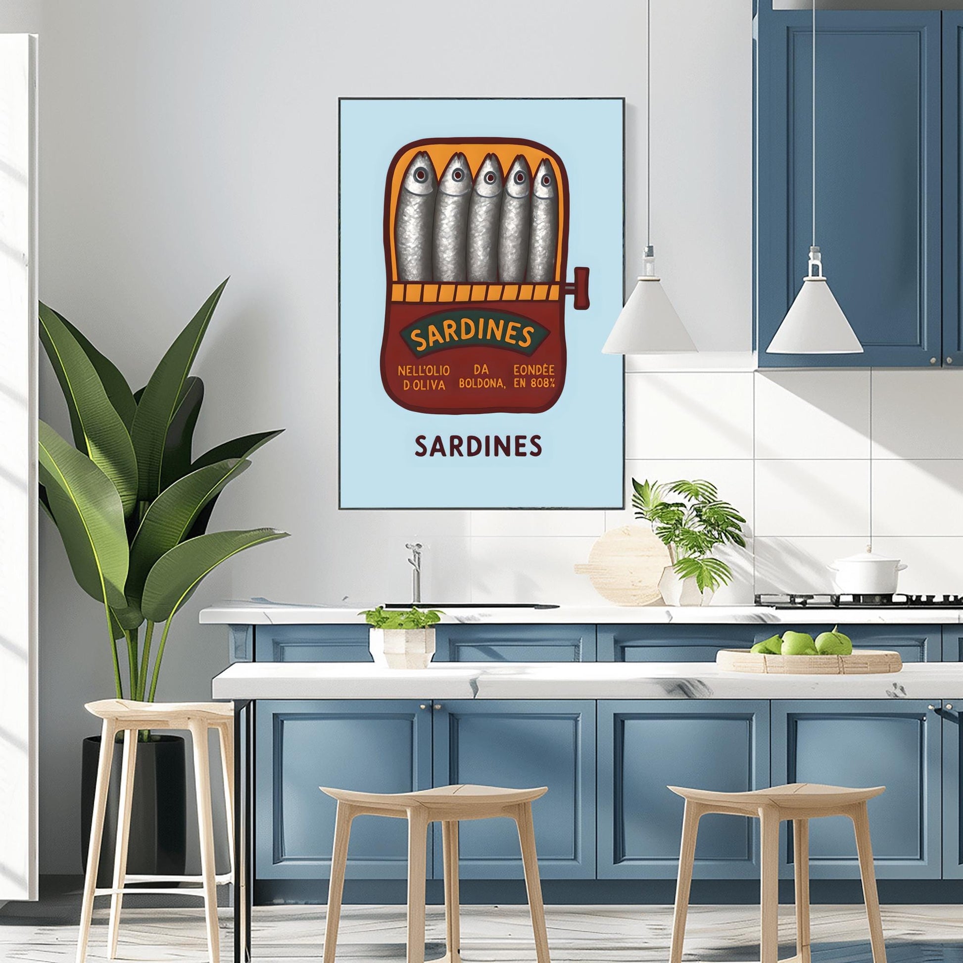 Add a sophisticated touch to your home with this unique retro sardine print. Whether displayed in your kitchen, dining area, or gifted as a birthday gift, this seafood art print delivers a timeless, coastal charm.