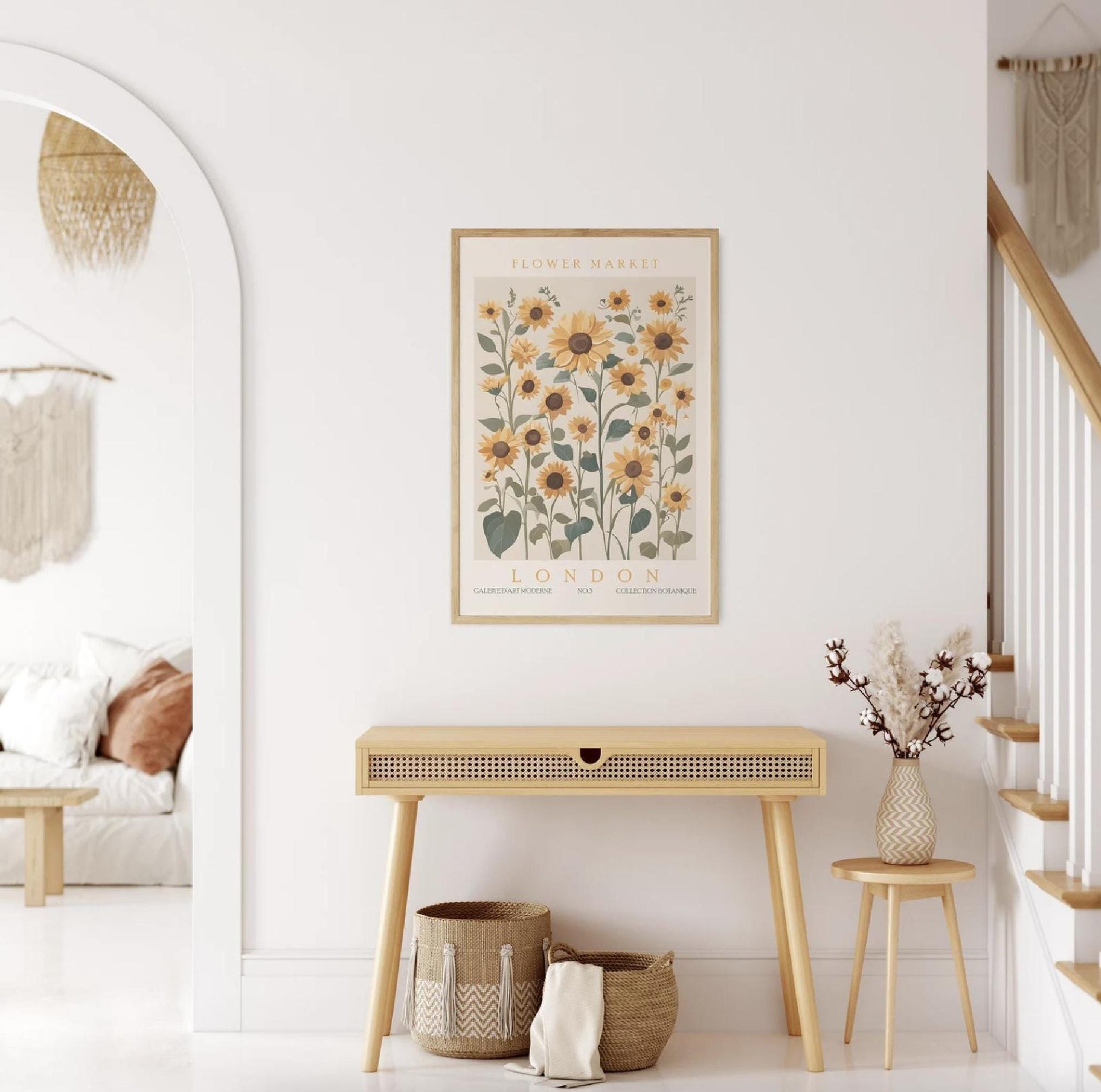 Sunflower Wall Art Print, London Flower Market Poster, Retro Floral Artwork, Abstract Botanical Exhibition Decor for Room & Living Space
