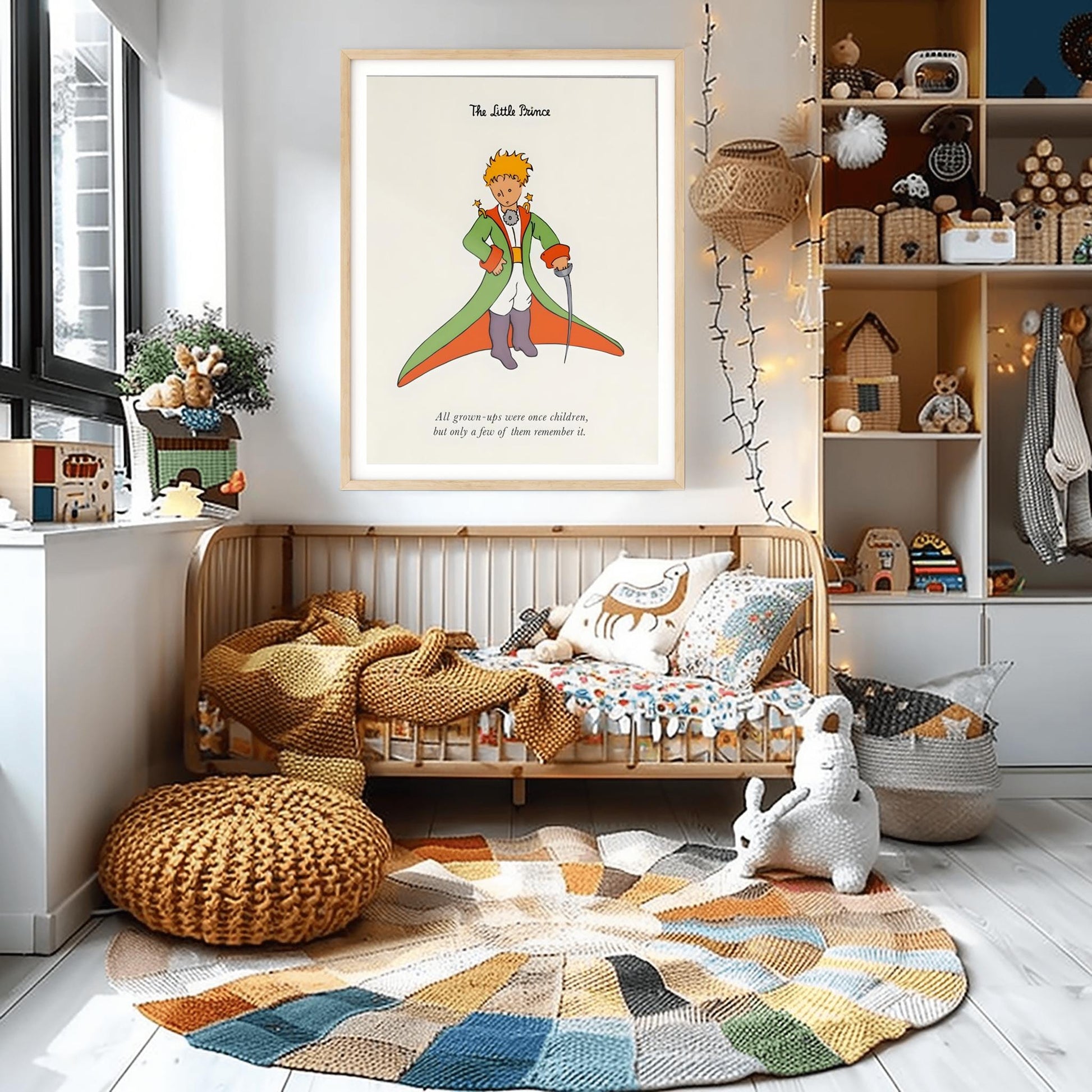 Bring the timeless wisdom and charm of Antoine de Saint-Exupéry’s classic tale to life with this physical little prince poster print. This delightful cartoon illustration captures the iconic petit prince character in his signature pose, paired with the beloved little prince quote: “All grown-ups were once children, but only a few of them remember it.” This nursery quote print is perfect as nursery wall art or little prince decor, offering a meaningful piece that resonates with all ages.Printed on high-quality, durable poster paper, this little prince print features vibrant colors and crisp details, designed to bring warmth to your home. Add a touch of literary magic and whimsy with this unique piece of little prince art—an ideal addition to nursery wall decor, a child’s room, or even a creative office.Whether you’re decorating a baby nursery, searching for a nursery print set, or looking for a special gift for a young reader or nostalgic adult, this kids room print makes a cherished gift. It’s also an excellent choice for a baby shower, providing a gender neutral print that suits any style. Features:- High-Quality Physical Poster Print: Ready to frame and display in your home.