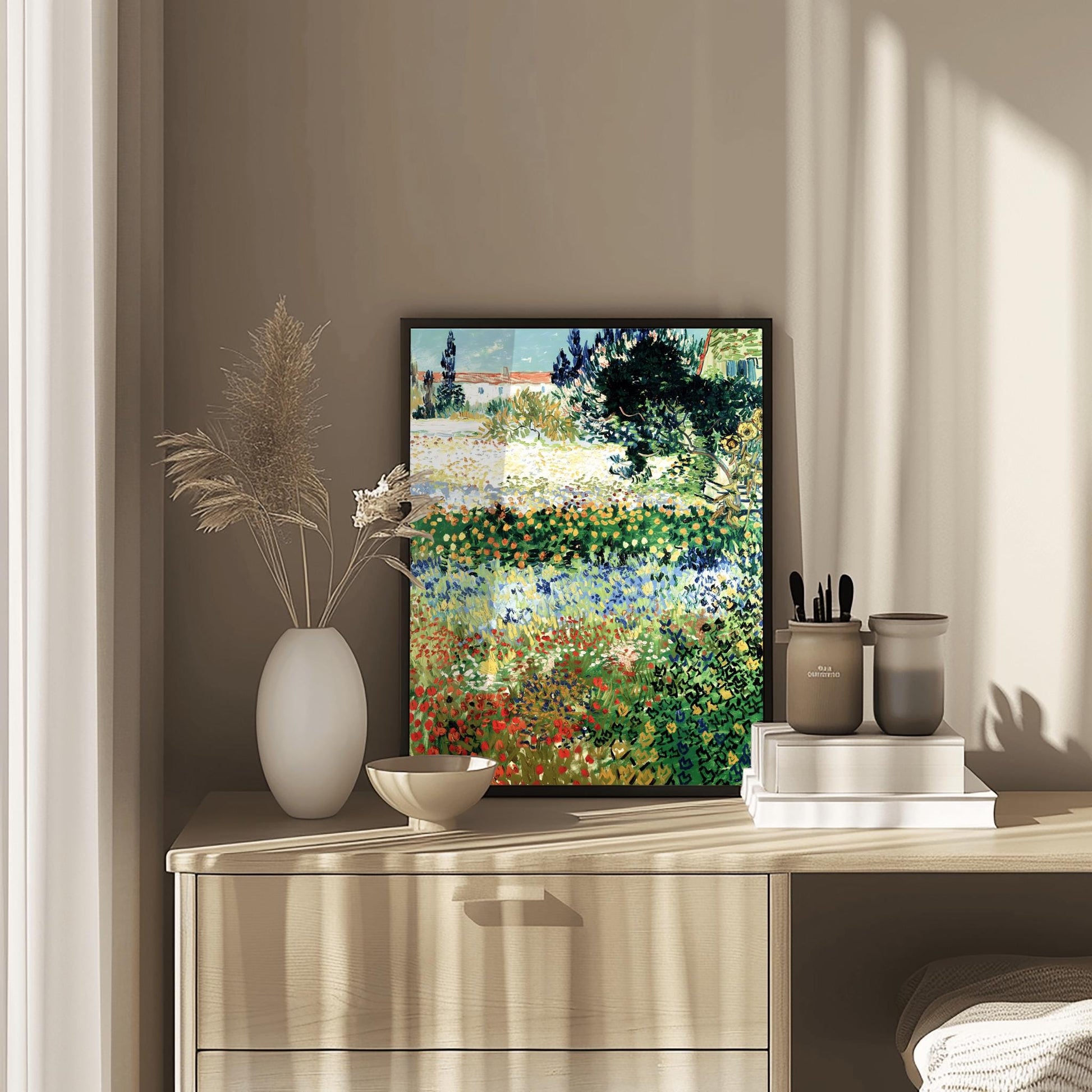Immerse yourself in the vivid beauty of Van Gogh art with this exquisite physical poster print—a stunning impressionist print featuring a beautiful garden scene art filled with colorful flowers. This captivating piece masterfully captures the spirit of post impressionism, echoing the expressive brushwork and vibrant palette that define classic art and the timeless style of a van gogh print. It’s a perfect choice for anyone seeking landscape art, a thoughtful art lover gift, or a striking nature wall art accent for your space.