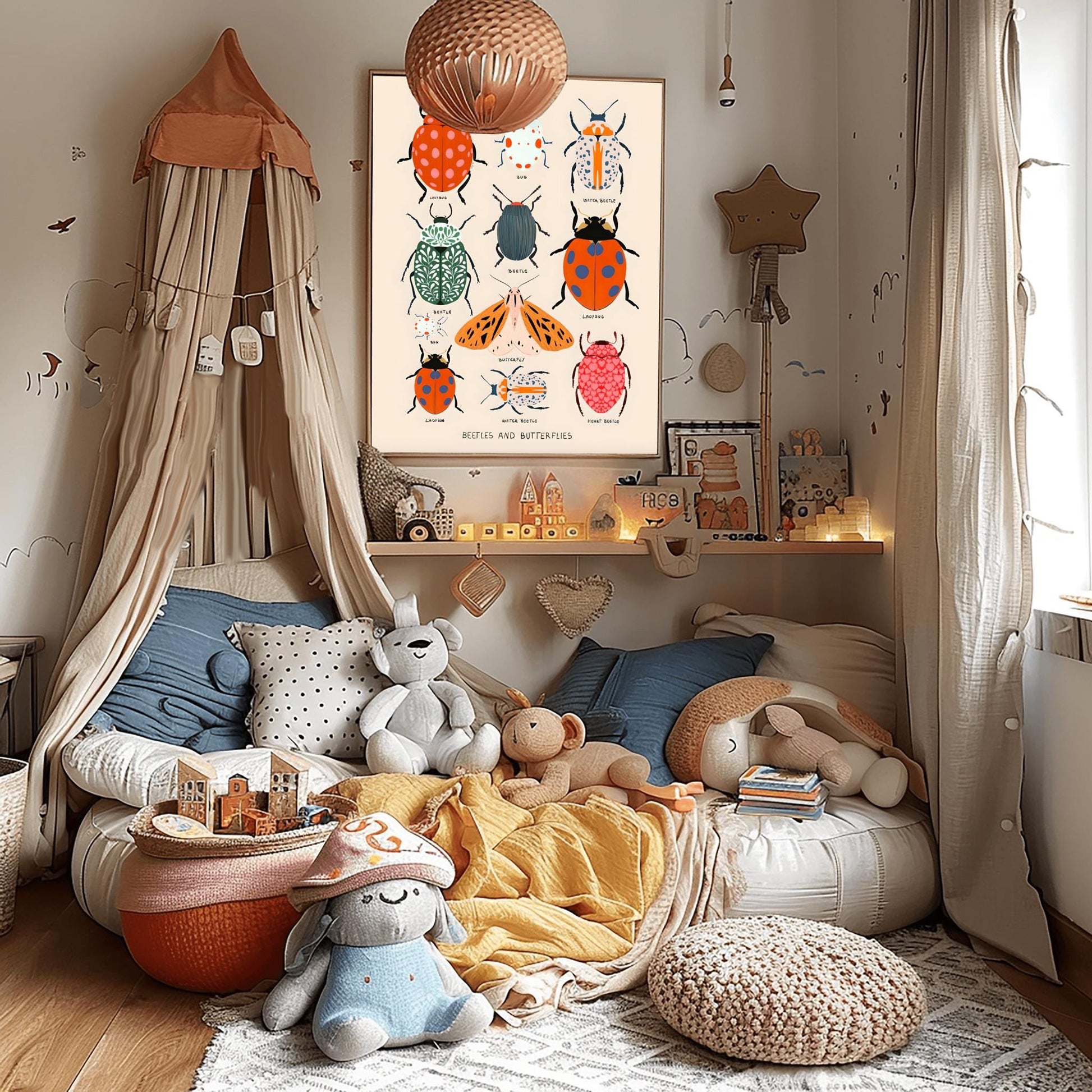 Whether you're a nature lover, a parent decorating a playroom, or a teacher looking for charming classroom decor, this bug poster is a fantastic choice.