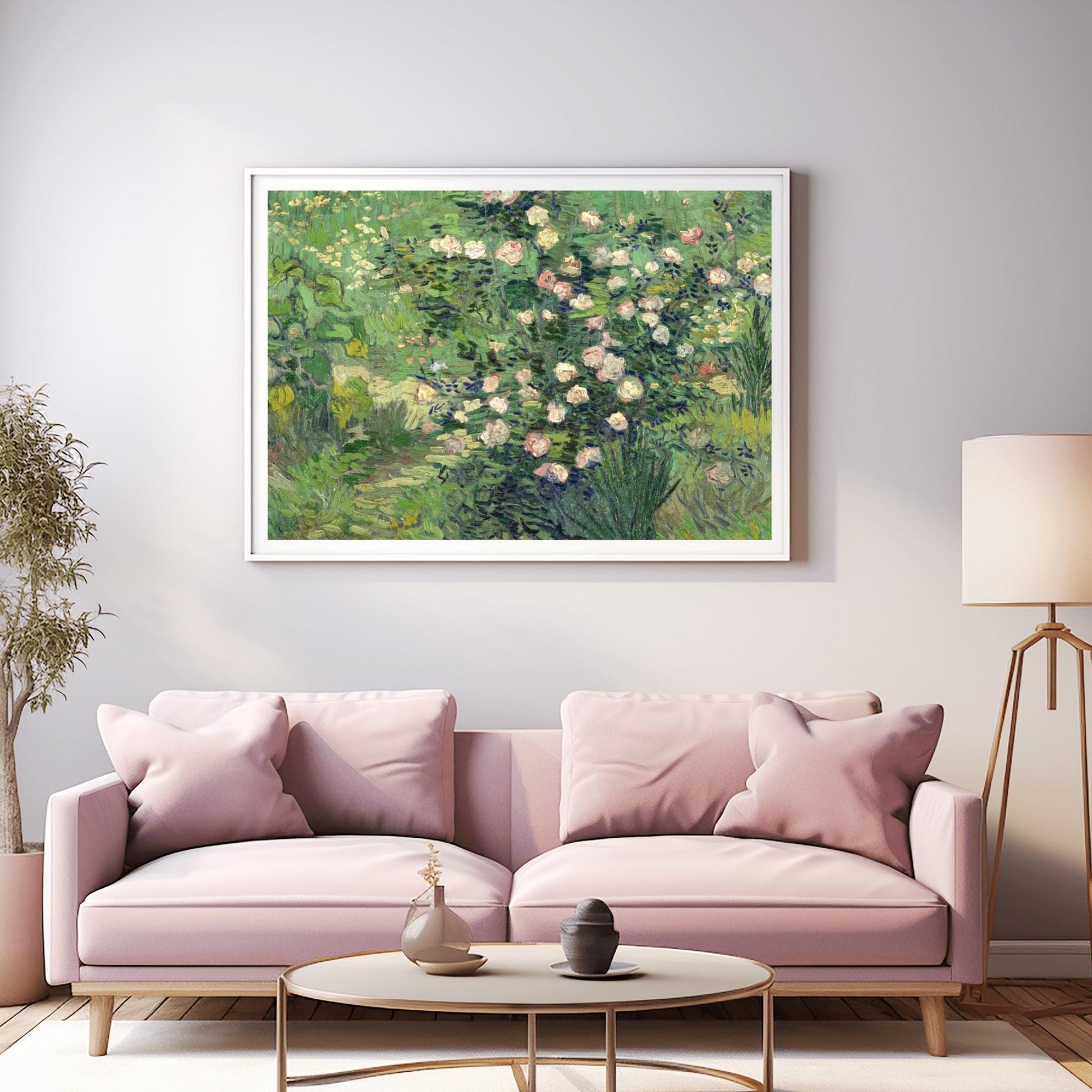 Bring a touch of classic art to your space with this french art print of Vincent Van Gogh's "Roses." This van gogh print is a stunning example of impressionist art, showcasing a lively garden painting with a lush flowers meadow that instantly brightens any room. The image is a striking floral print, offering an eclectic print style that fits seamlessly into your home decor print collection.Whether you love french impressionist masterpieces or want an aesthetic floral addition to your wall, this van gogh roses artwork makes a beautiful and timeless choice. Available sizes include: