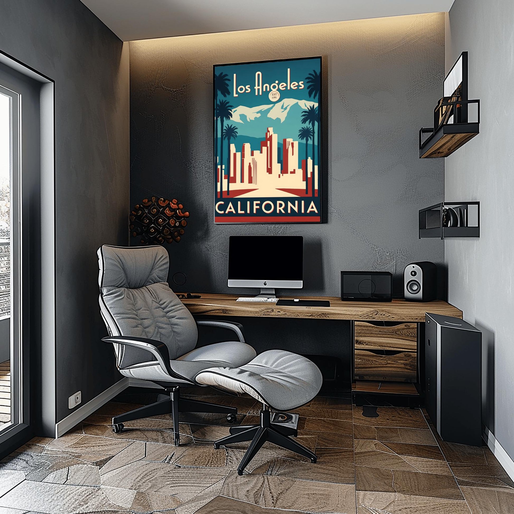 Vintage Los Angeles Travel Poster: Art Deco LA Skyline, Retro California Wall Art